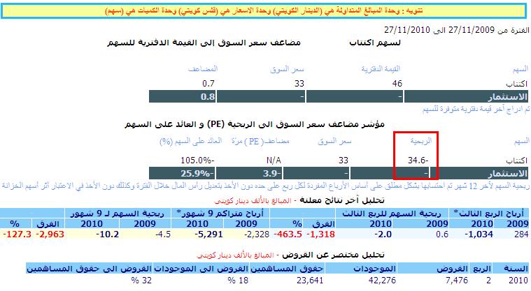 سهم اكتتاب خاسر لآخر 12 شهر ، ولذلك لا ينطبق عليه مكرر ربحية السهم