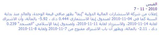 الأخبار المنشورة في الصحف اليومية لسهم ايفا لشهر نوفمبر 2010
