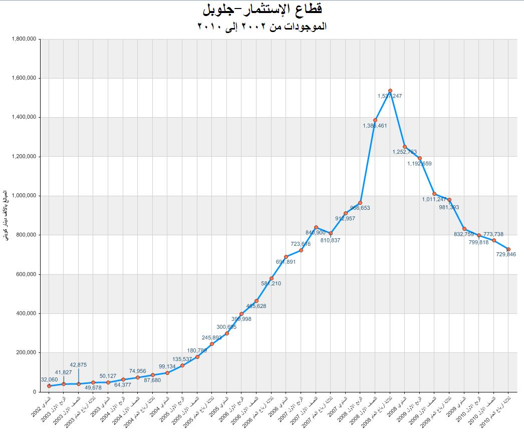 موجودات شركة جلوبل للفترة المقارنة من الربع الأول 2002 حتى ثلاثة أرباع العام 2010