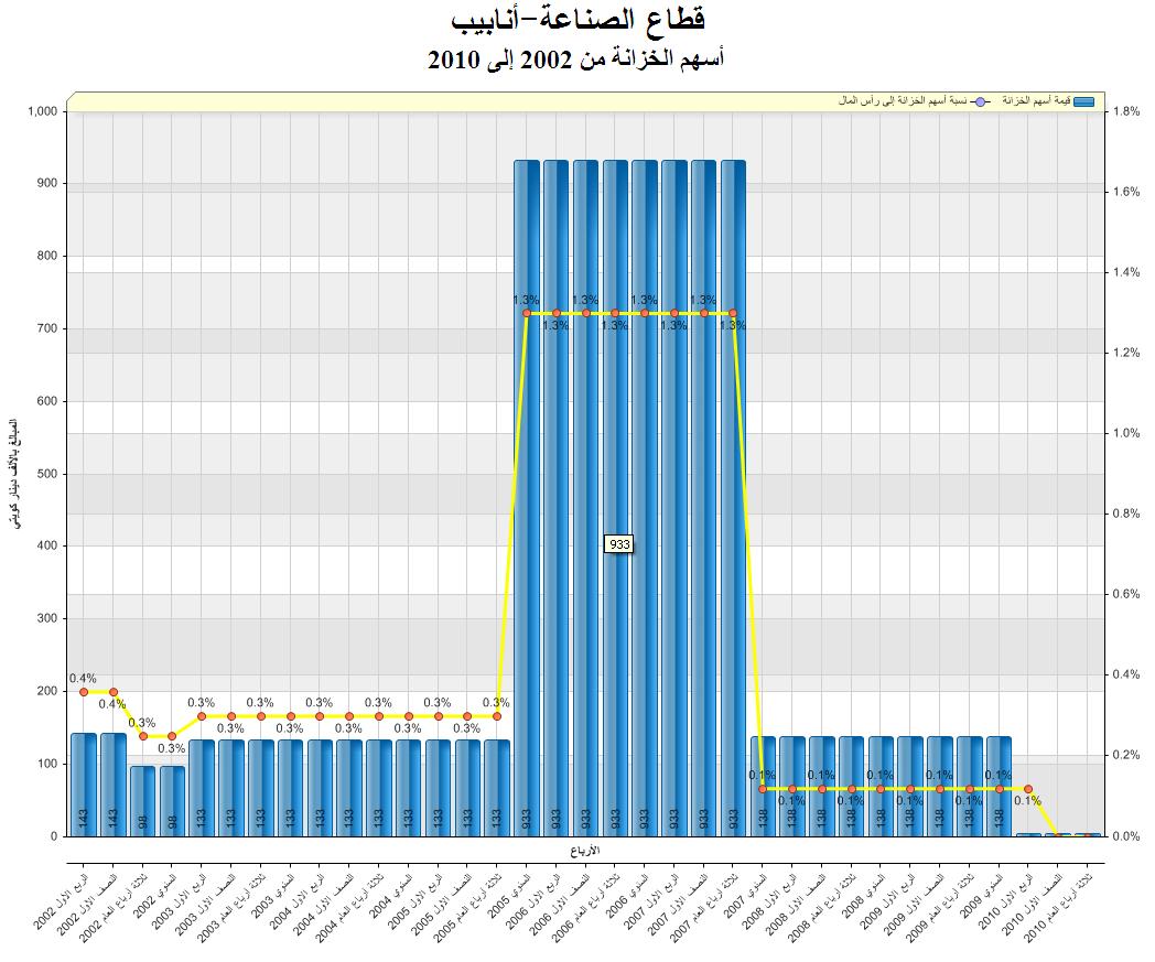 أسهم خزانة شركة أنابيب للفترة المقارنة من الربع الأول 2002 حتى ثلاثة أرباع العام 2010