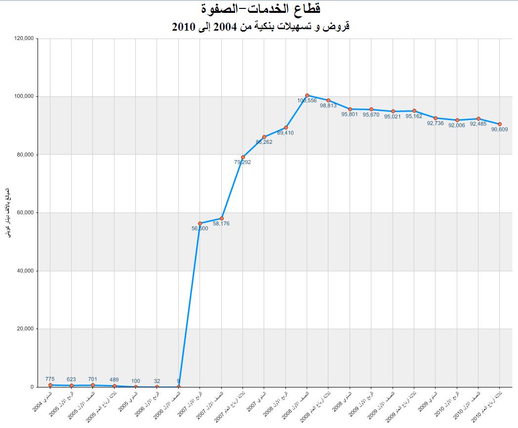 قروض وتسهيلات بنكية شركة مجموعة الصفوة للفترة المقارنة من الربع الأول 2004 حتى ثلاثة أرباع العام 2010