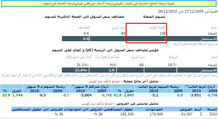القيمة الدفترية لسهم الصفاة