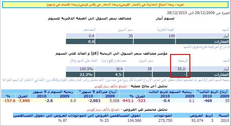 سهم أبيار خاسر لآخر 12 شهر ، ولذلك لا ينطبق عليه مكرر ربحية السهم