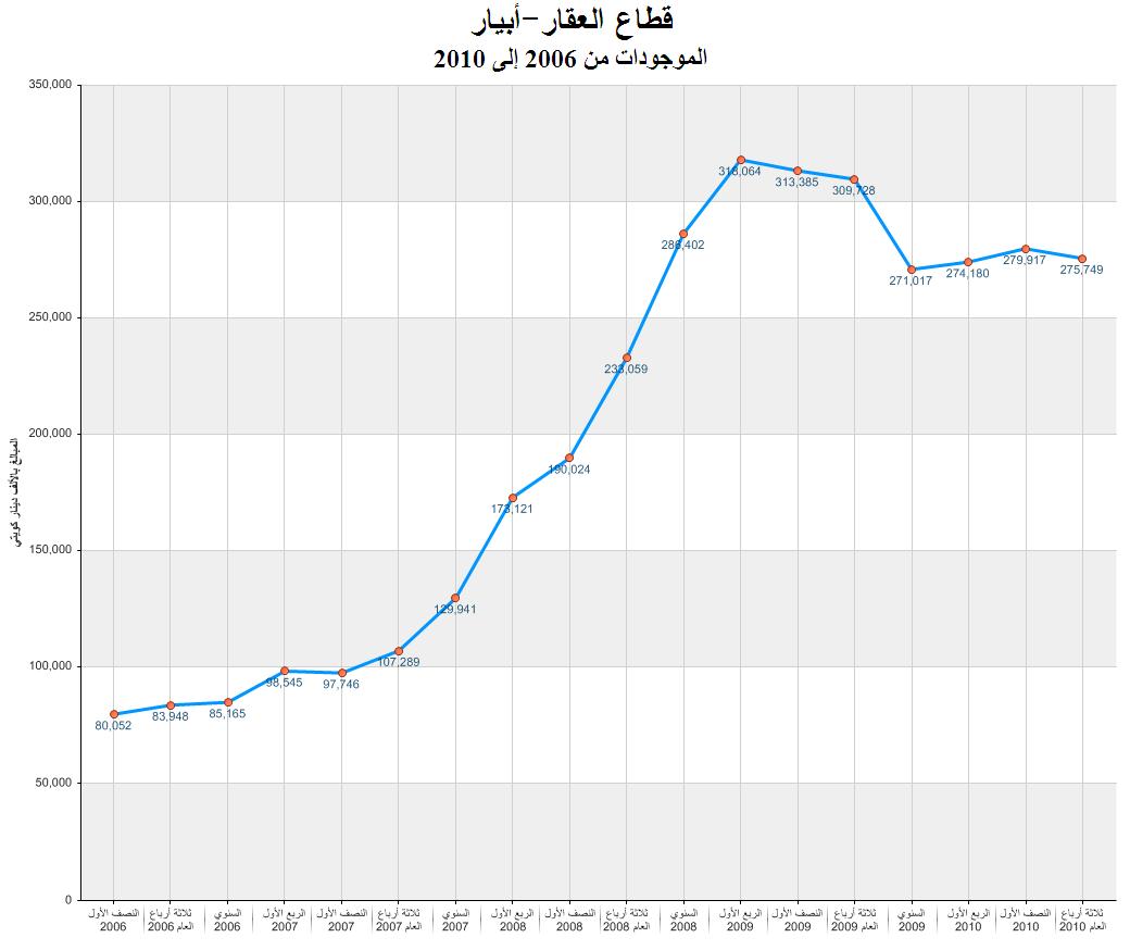 موجودات شركة أبيار للتطوير العقاري للفترة المقارنة من الربع الأول 2006 حتى ثلاثة أرباع العام 2010