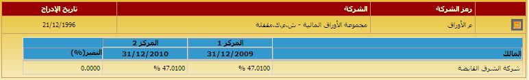 مقارنة الملكيات المعلنة لسهم م الأوراق للفترة المقارنة من 31/12/2009 حتى 31/12/2010