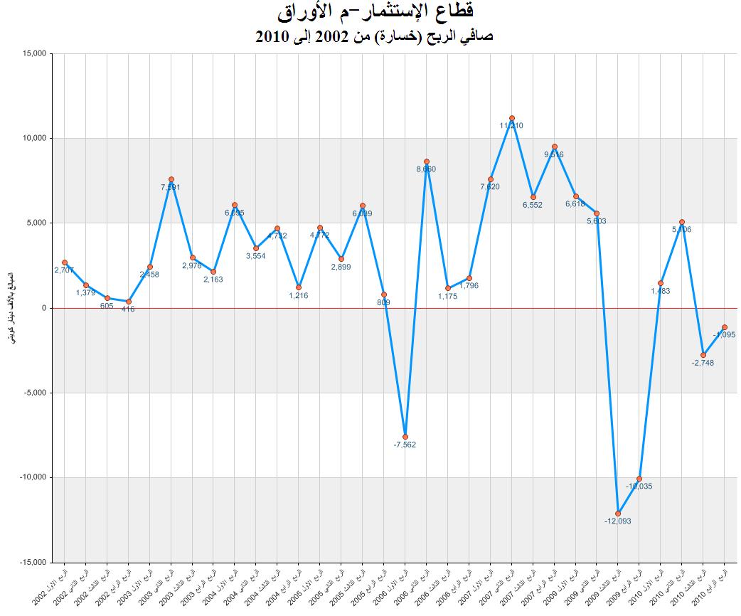 صافي ربح (خسارة) شركة مجموعة الأوراق المالية للفترة المقارنة من الربع الأول 2002 حتى الربع الرابع 2010