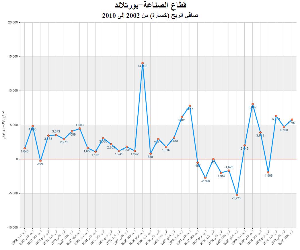 صافي ربح (خسارة) شركة بورتلاند للفترة المقارنة من الربع الأول 2002 حتى الربع الثالث 2010