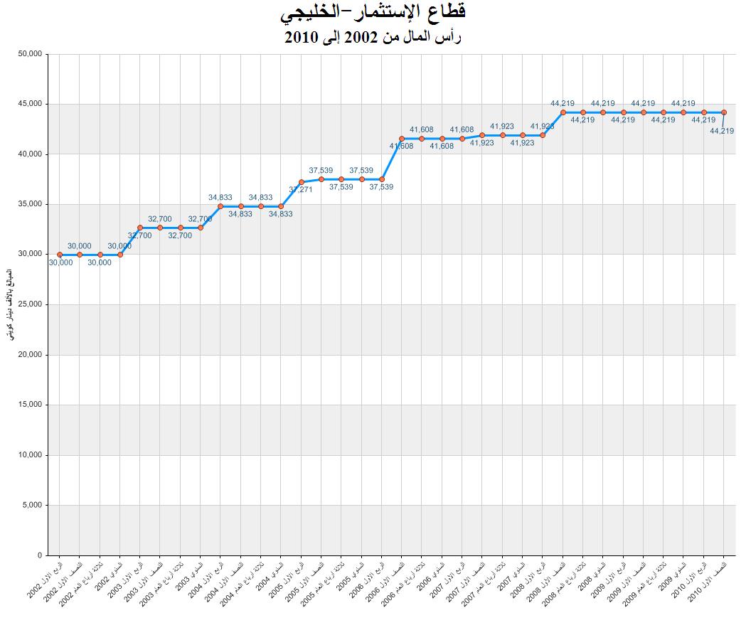 رأس المال شركة بيت الاستثمار الخليجي للفترة المقارنة من الربع الأول 2002 حتى النصف الأول 2010