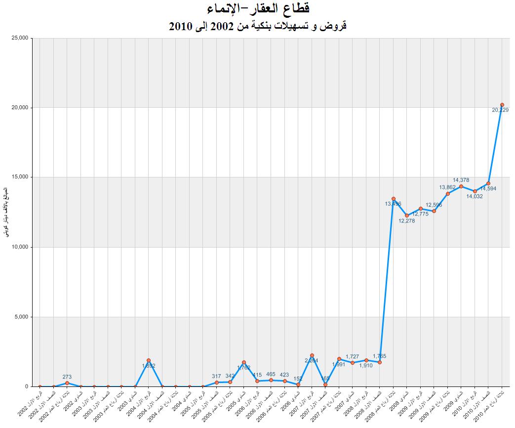 قروض وتسهيلات بنكية شركة الانماء العقارية للفترة المقارنة من الربع الأول 2002 حتى ثلاثة أرباع العام 2010