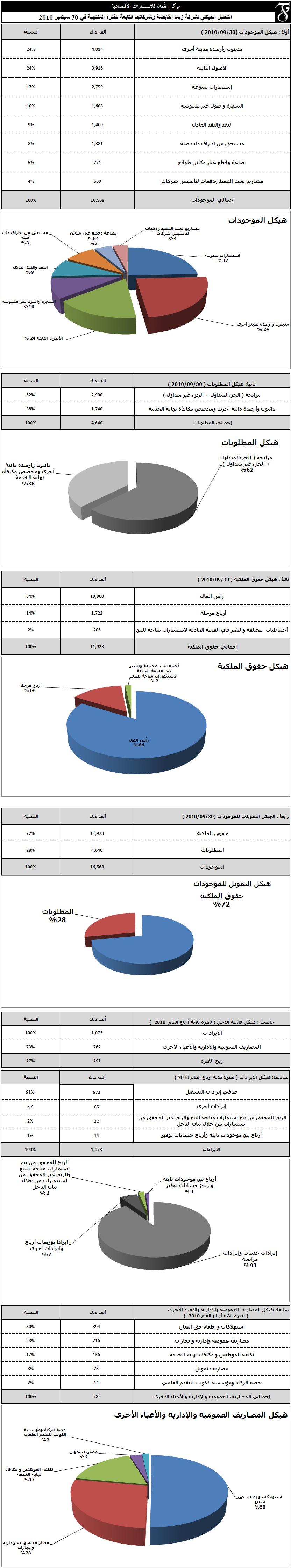 التحليل الهيكلي لشركة زيما القابضة وشركاتها التابعة للفترة المنتهية في 30 سبتمبر 2010