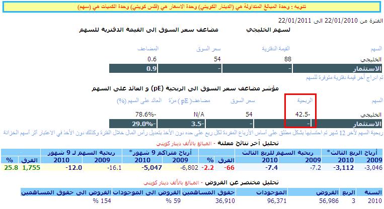 سهم الخليجي خاسر لآخر 12 شهر ، ولذلك لا ينطبق عليه مكرر ربحية السهم