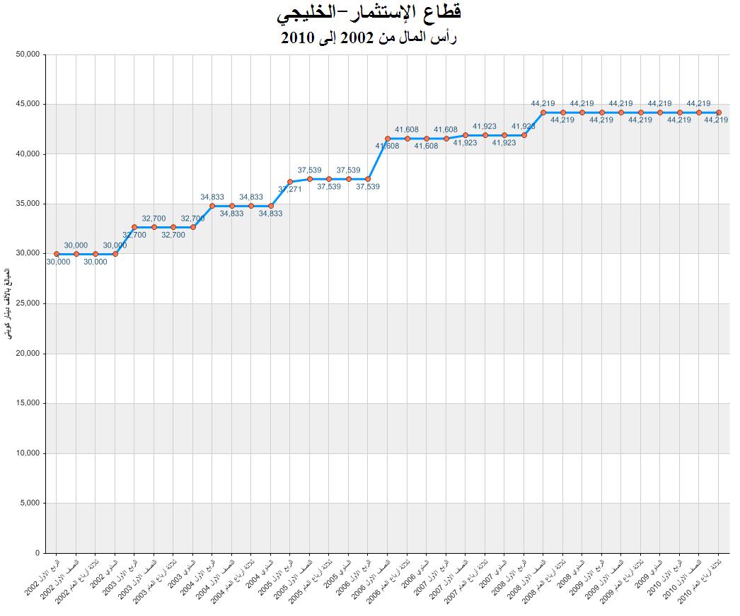 رأس المال شركة بيت الاستثمار الخليجي للفترة المقارنة من الربع الأول 2002 حتى ثلاثة أرباع العام 2010