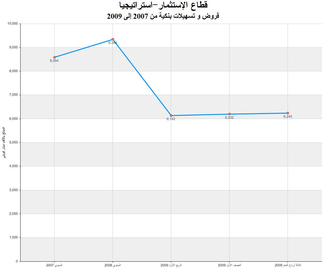 القروض والتسهيلات البنكية لشركة استراتيجيا مقارنة الفترة من العام 2007 حتى ثلاثة ارباع العام 2009