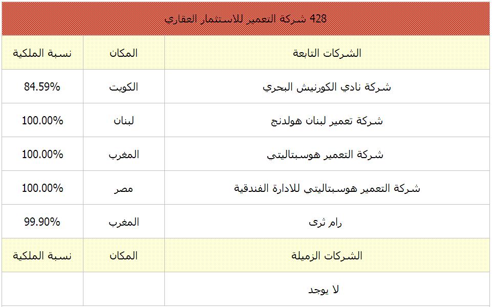 الشركات التابعة والزميلة لشركة التعمير لنهاية العام 2009