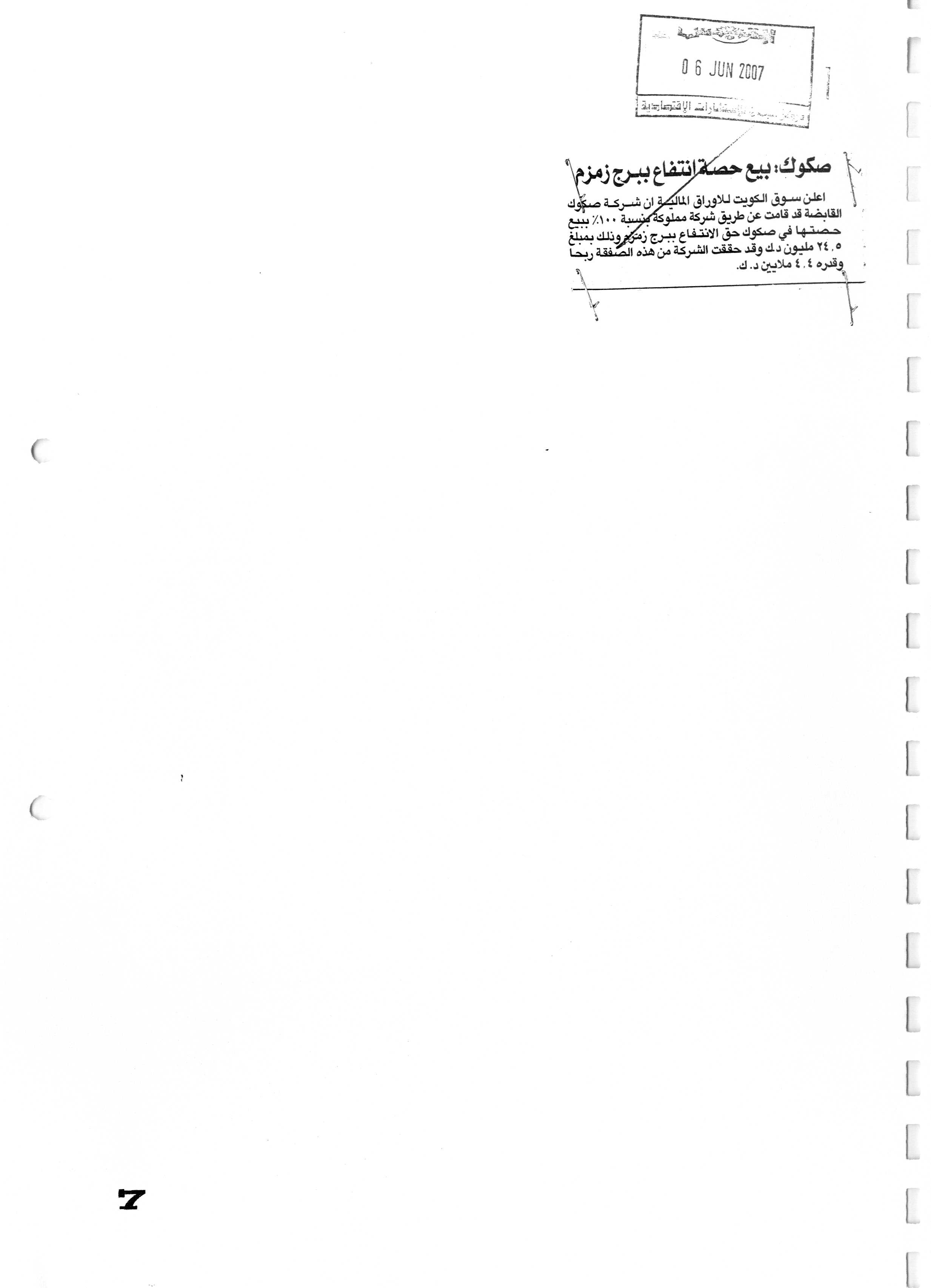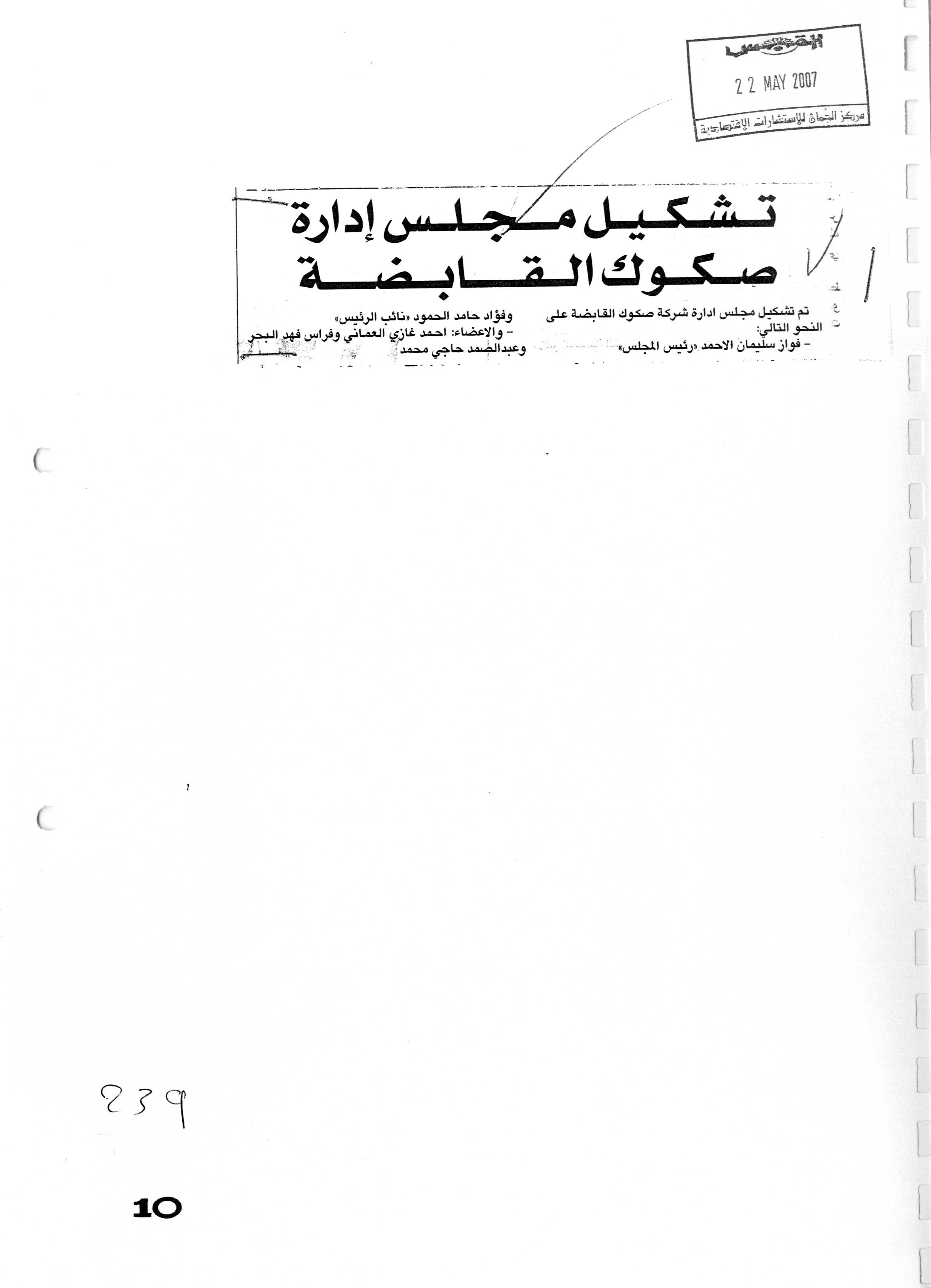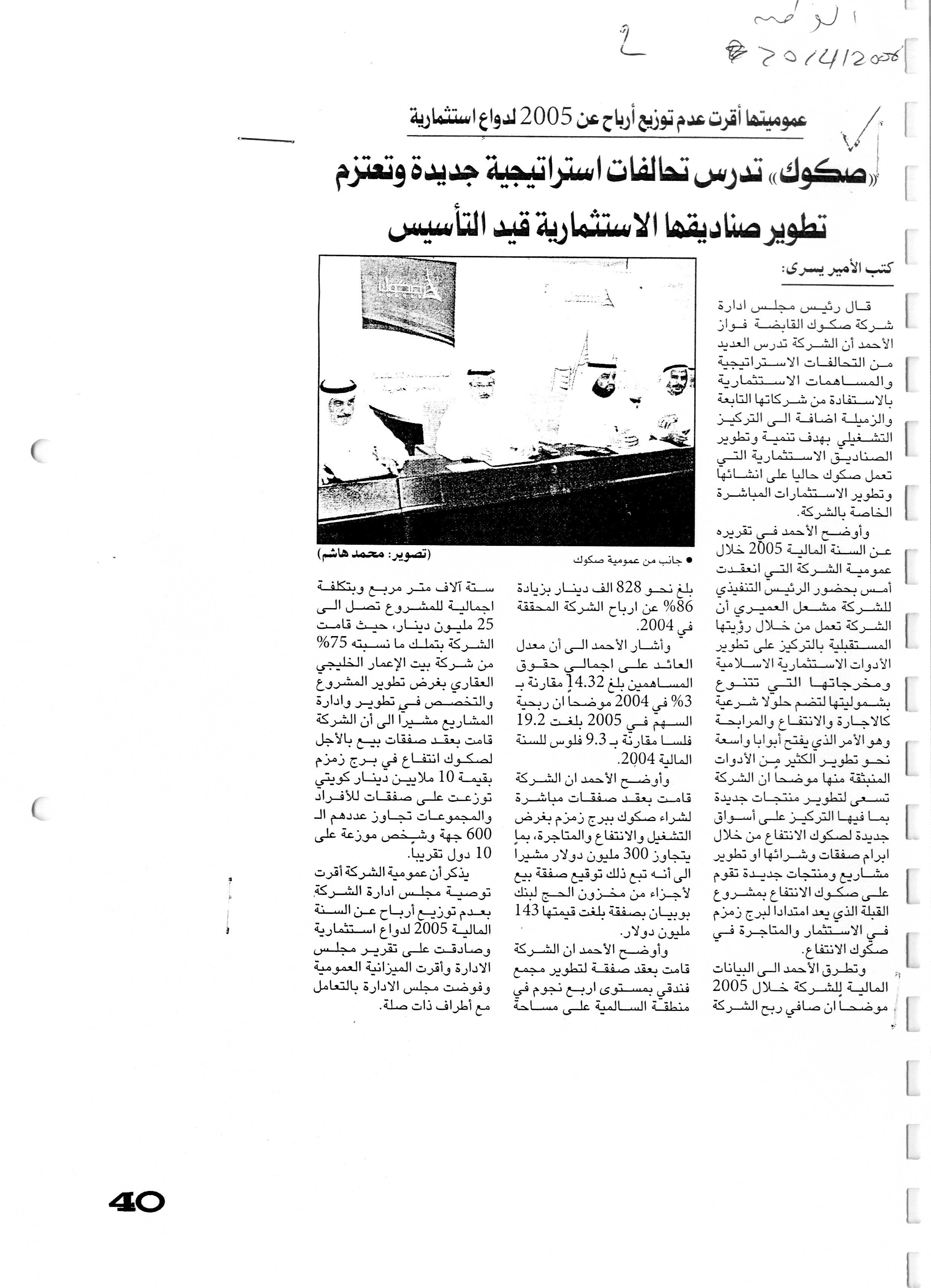 فهرس أخبار شركة صكوك القابضة في بعض الصحف المحلية خلال الفترة من 21 ديسمبر 2005 إلى 08 يوليو 2007
