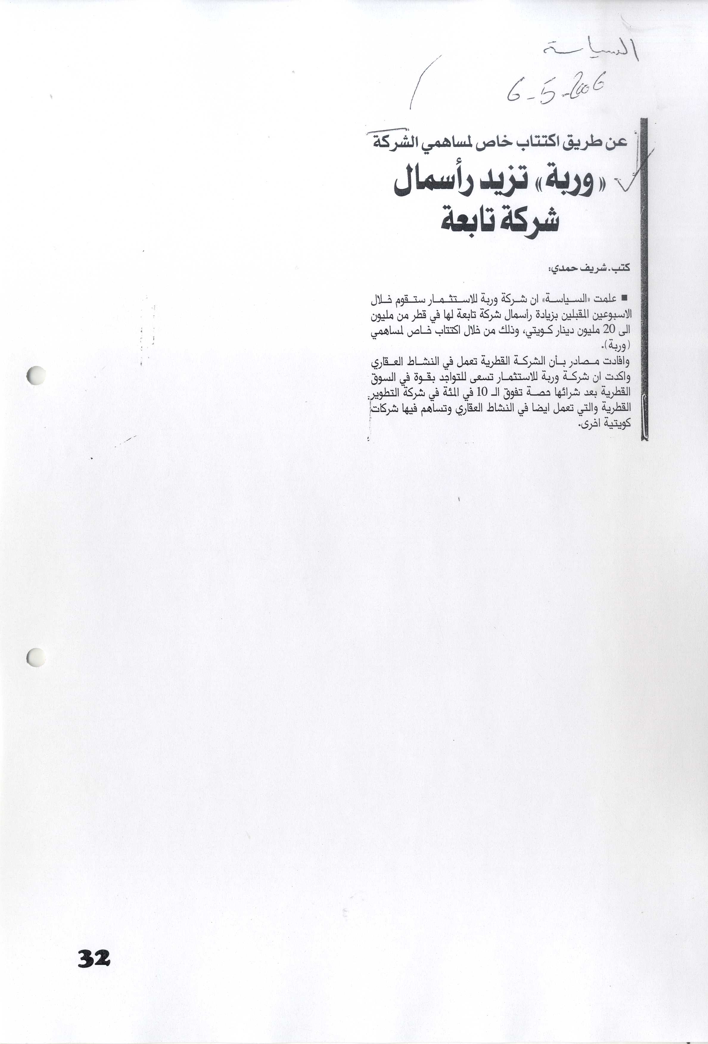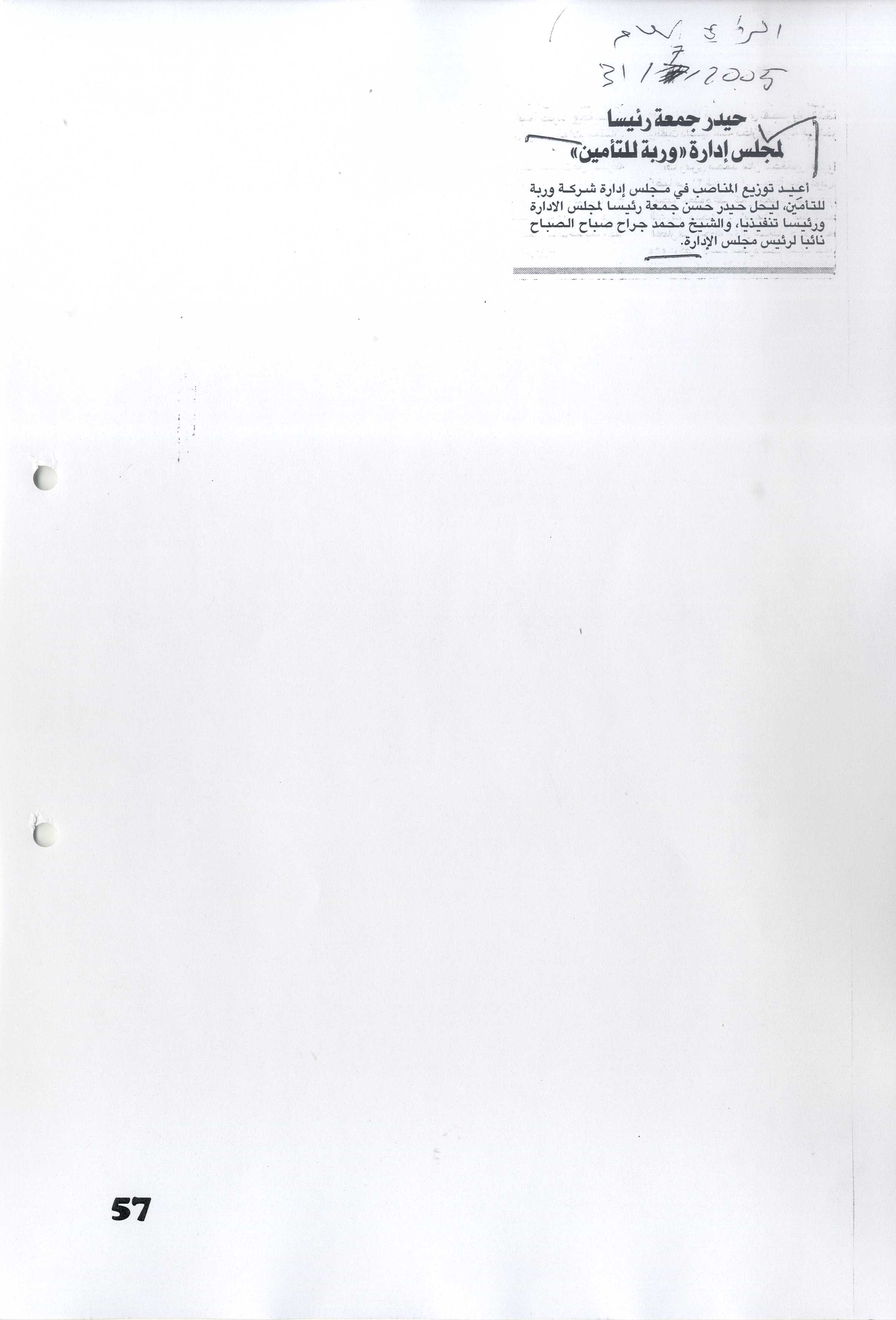 "وربة" أن تعلن للسادة المساهمين والعملاء الكرام بأنه قد قرر بجلسته المنعقدة بتاريخ 2004/5/5 |