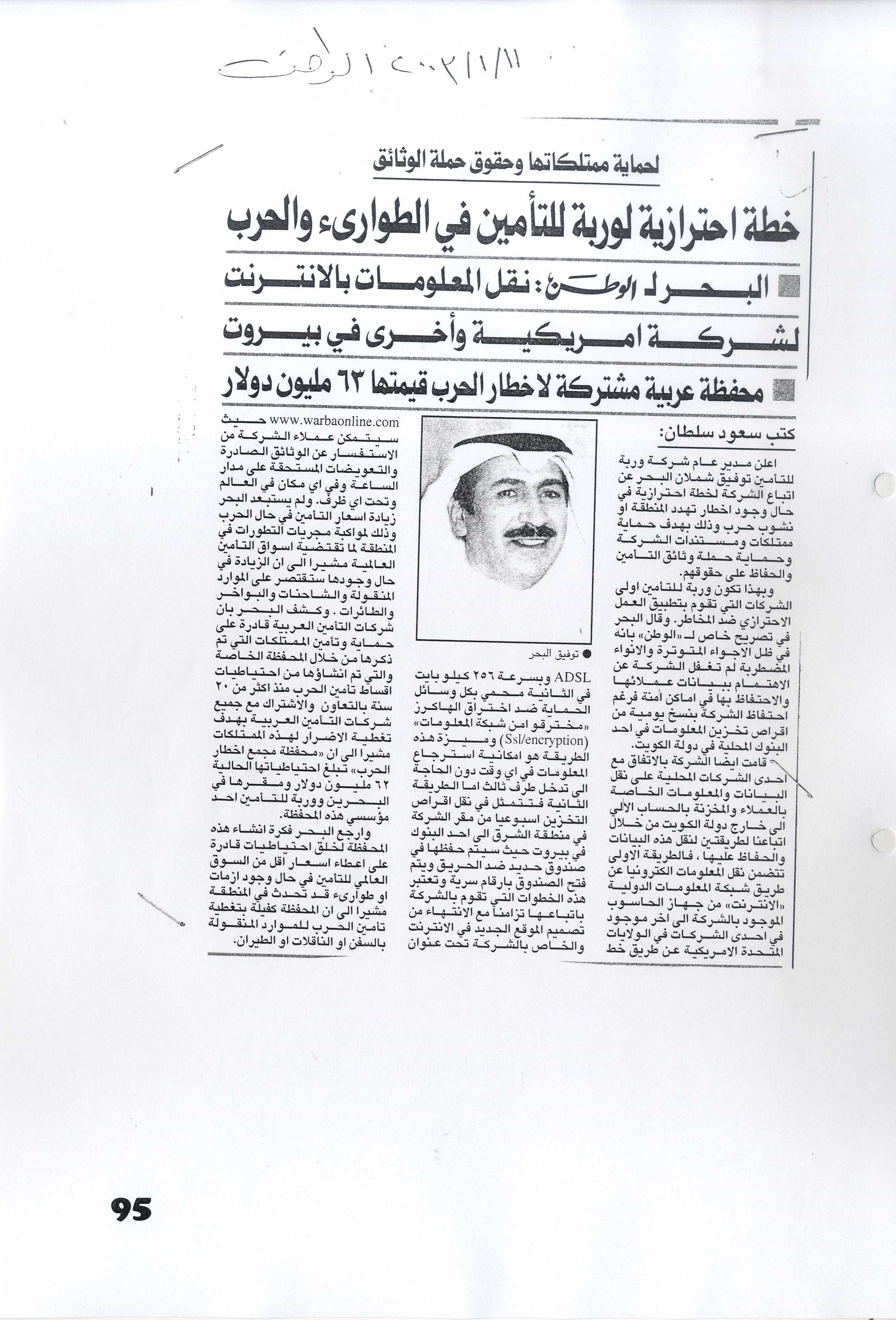 البحر لـ الوطن : مطلوب شركة لإعادة التأمين في المنطقة لمواجهة الأخطار والخسائر الكبيرة |