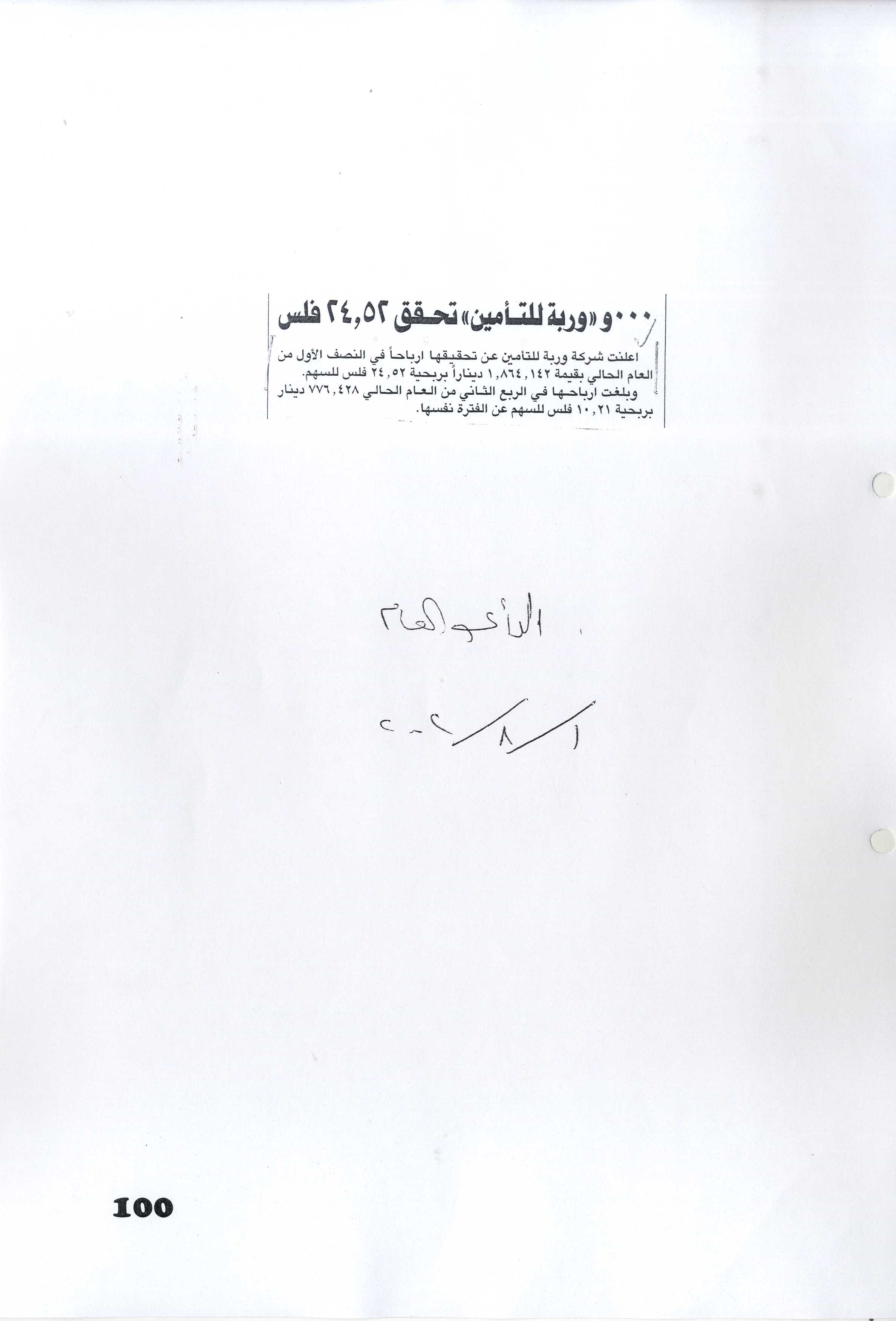 تتمة "وربة" نتائج الأعمال لعام 20043 وقرارت الجمعية العمومية العادية والغير عادية للمساهمين المنعقدة بتاريخ 2003/3/30 |