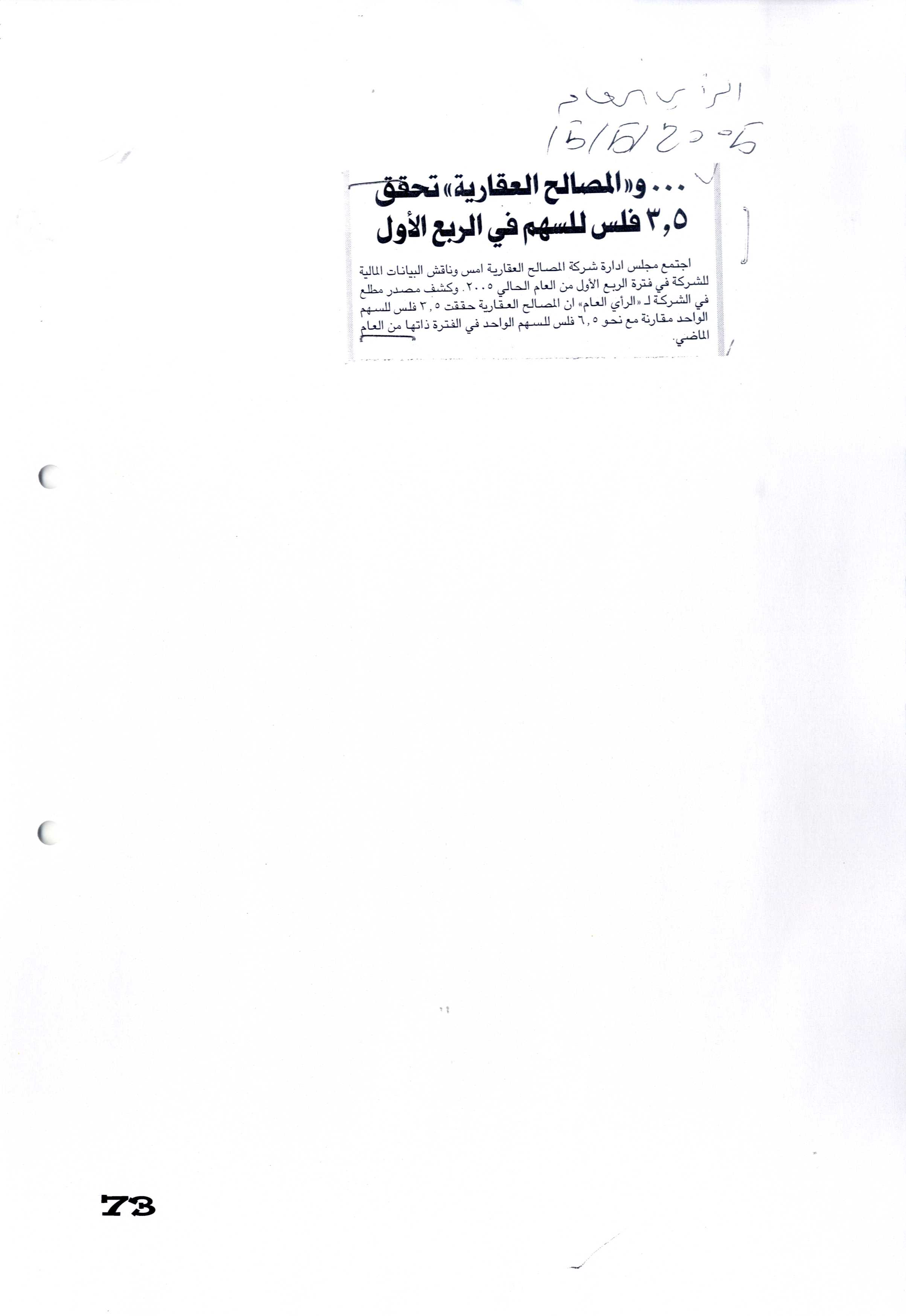 فهرس أرشيف أخبار "شركة المصالح العقارية" في بعض الصحف المحلية خلال الفترة من 24 أبريل 2002 إلى 15 يوليو 2007