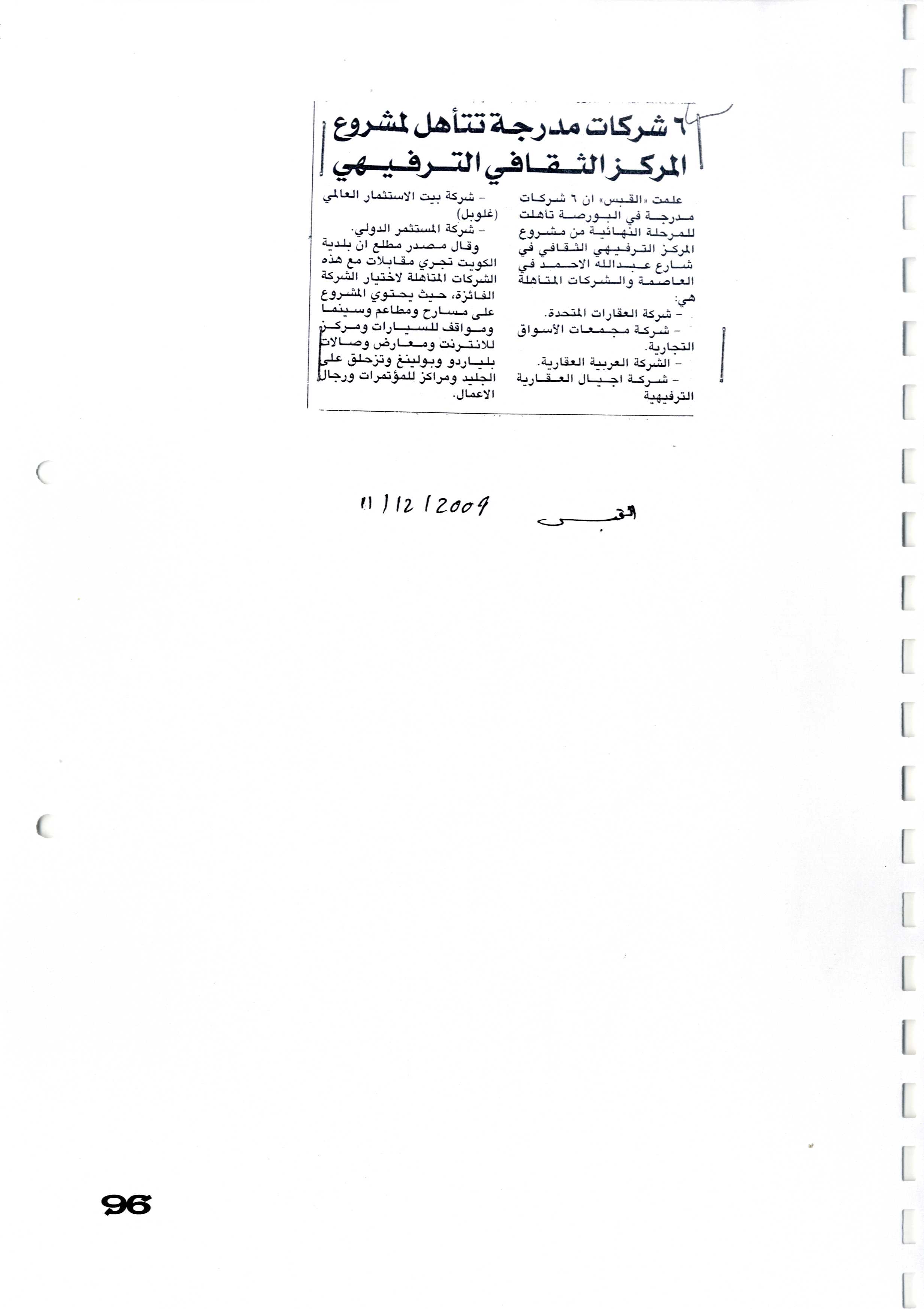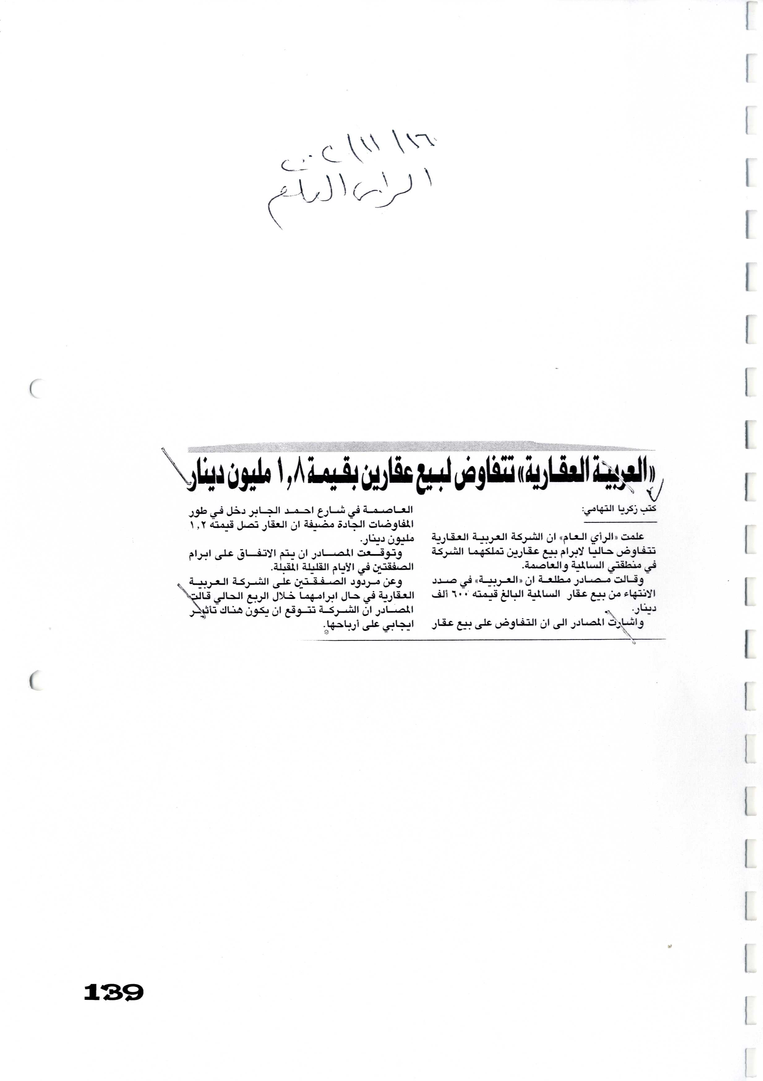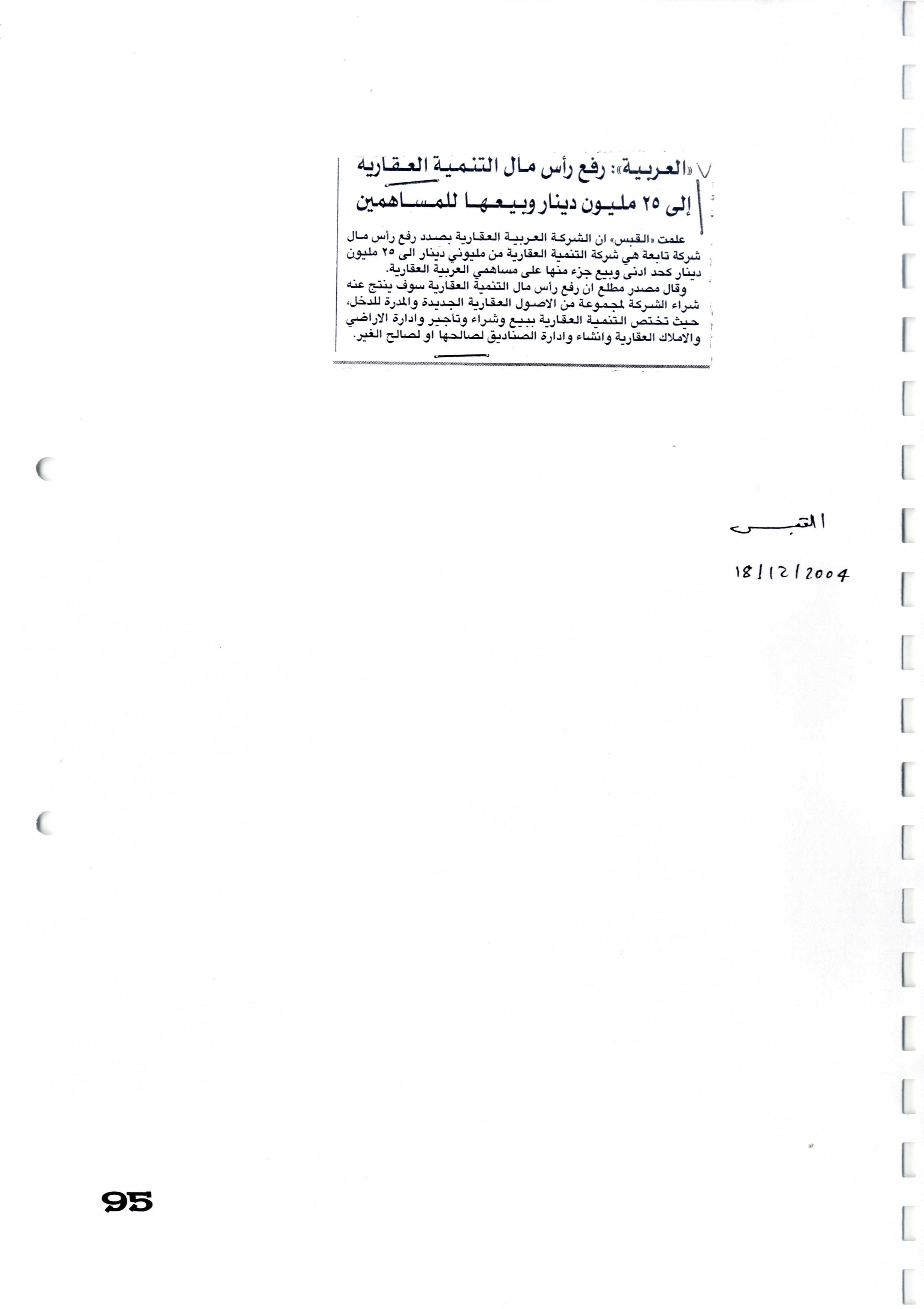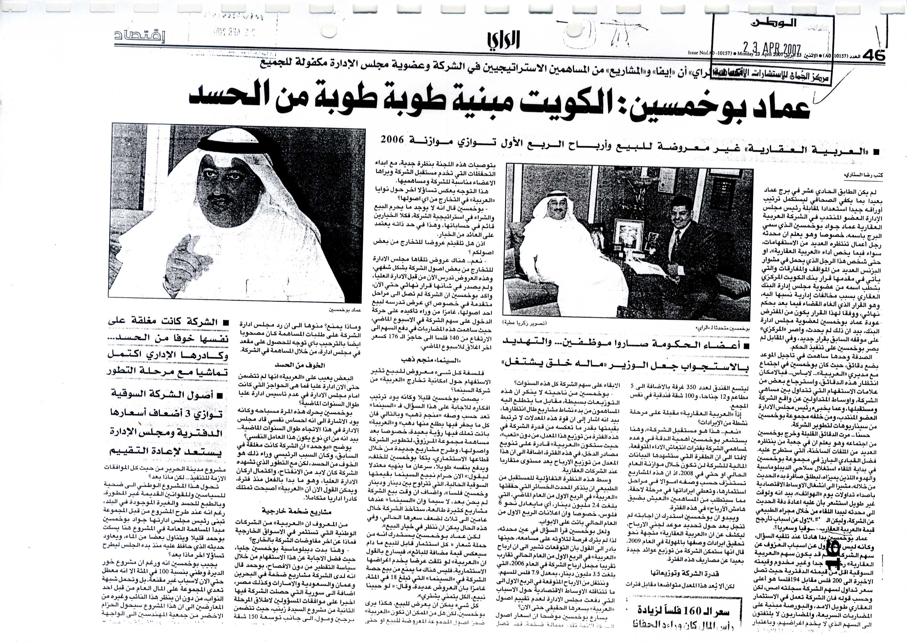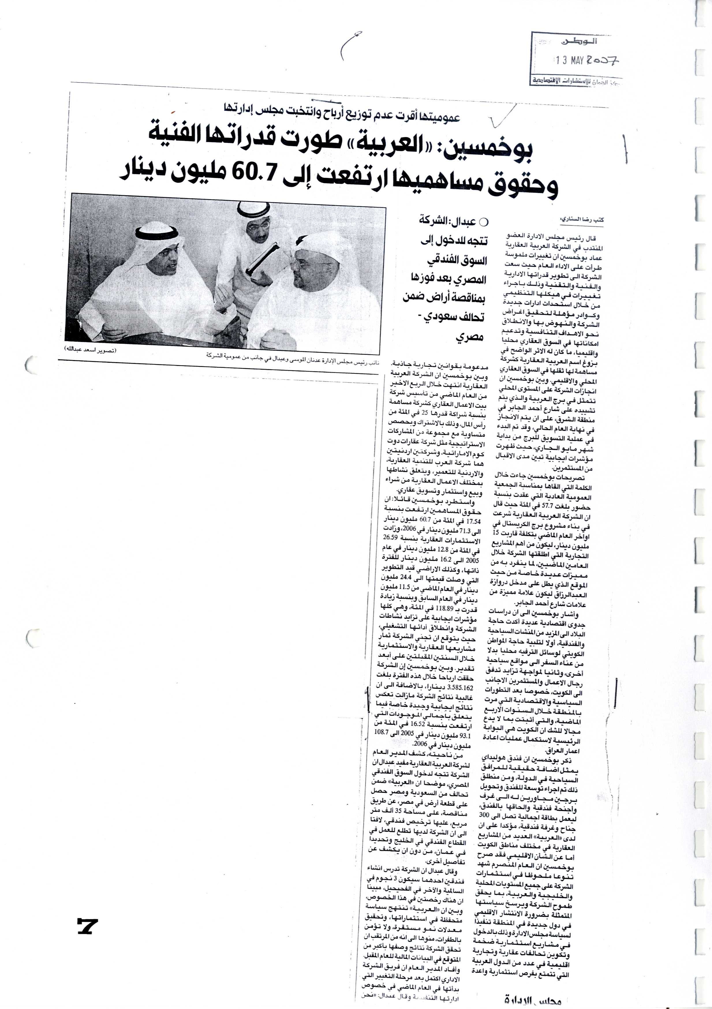 فهرس أرشيف أخبار الشركة "العربية العقارية" في بعض الصحف المحلية خلال الفترة من 18 أبريل 2002 إلى 11 يونيو 2007