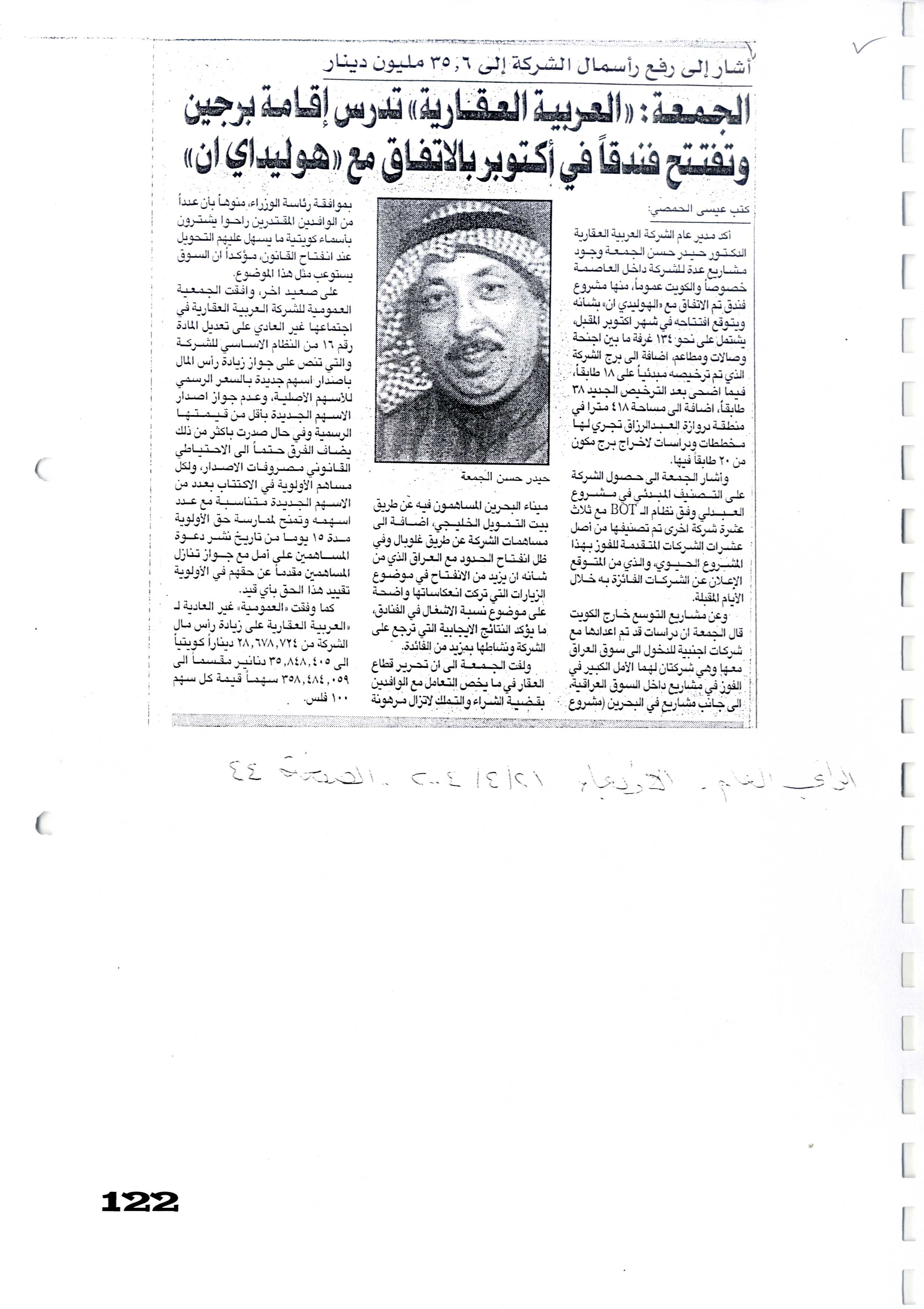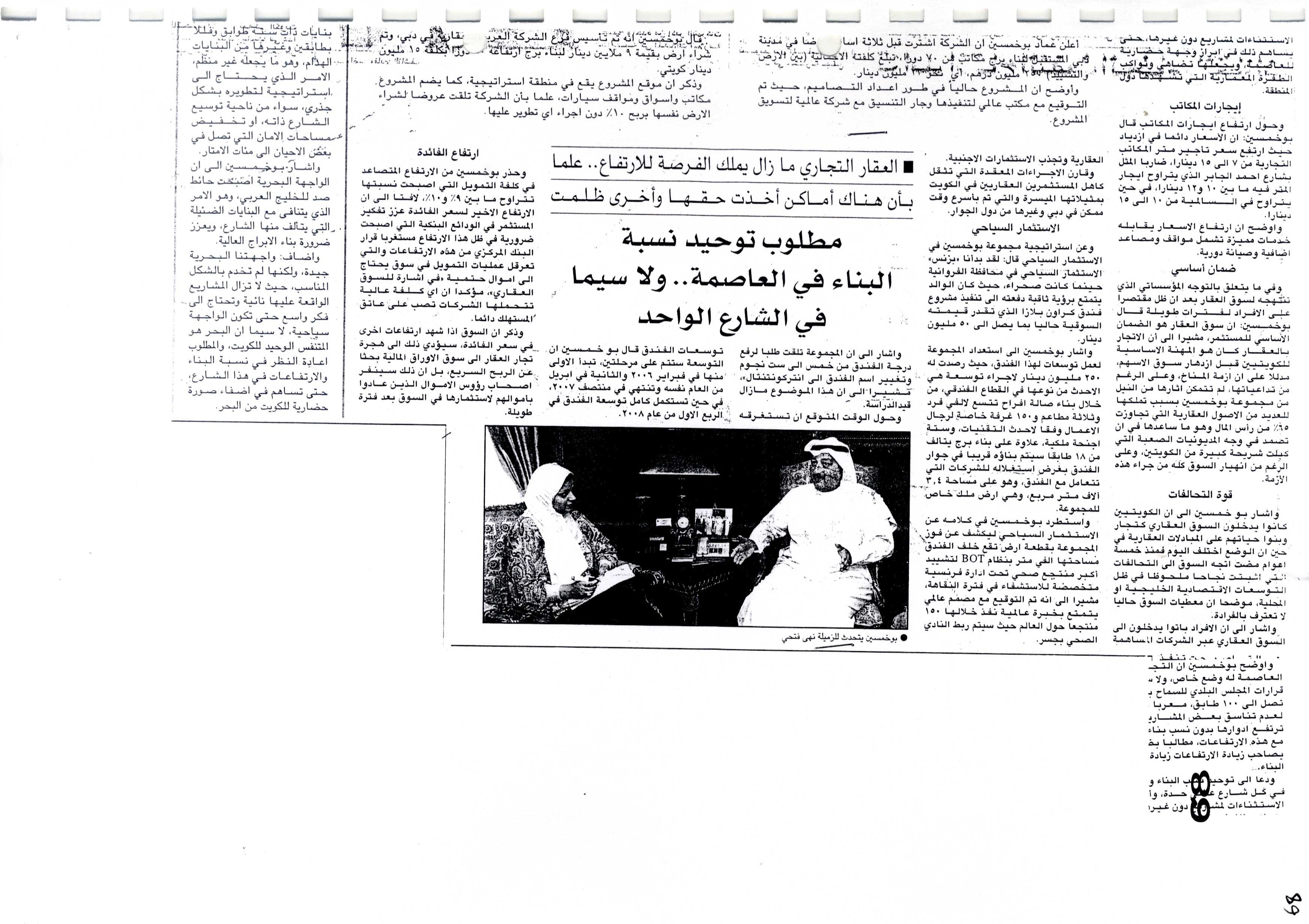 تتمه : بوخمسين : "ع عقارية" طورت قدراتها الفنية وحقوق مساهميها إرتفعت إلى 60.7 مليون دينار
