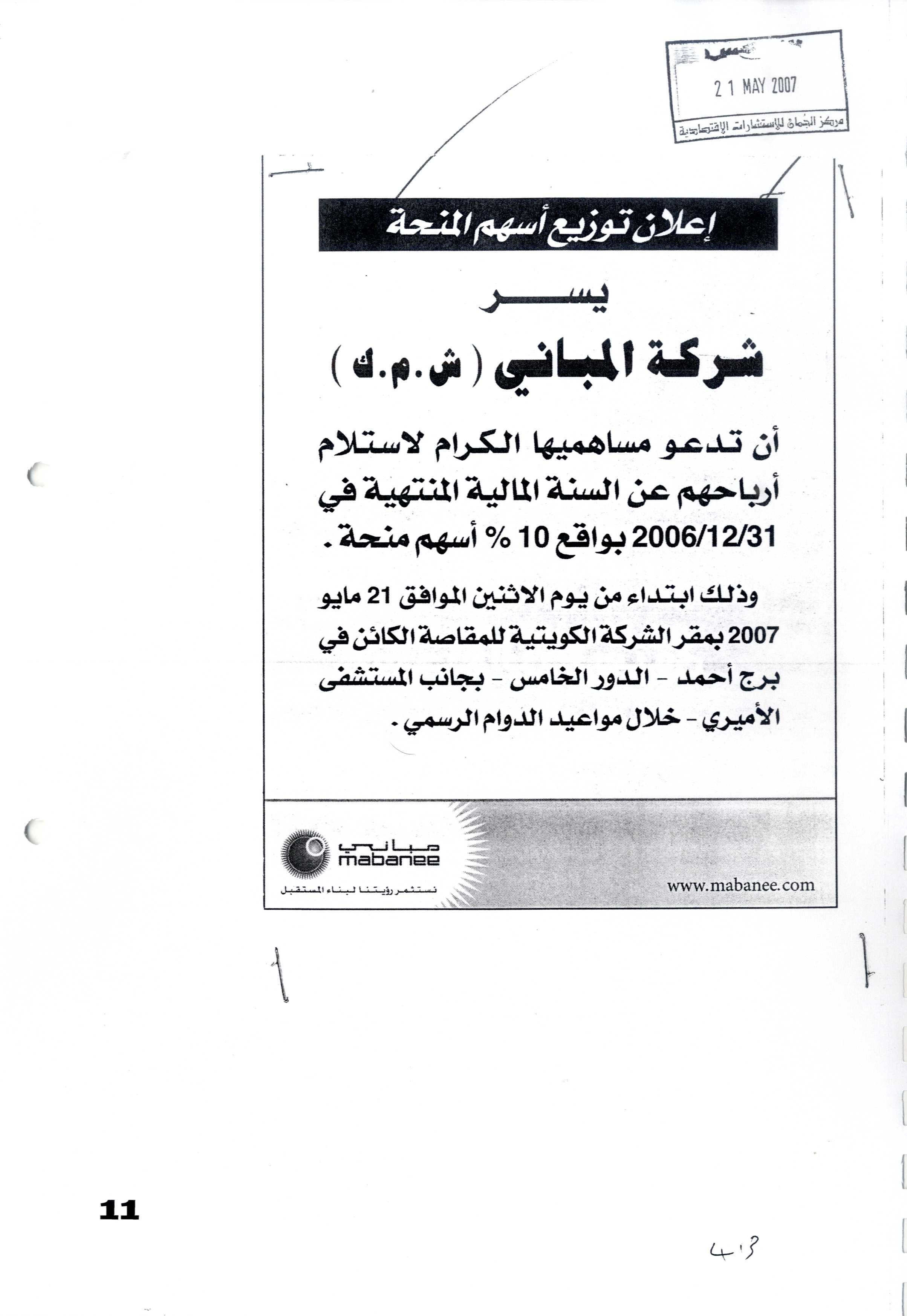 العادية للشركة للعام المالي المنتهى فى 2006/12/31