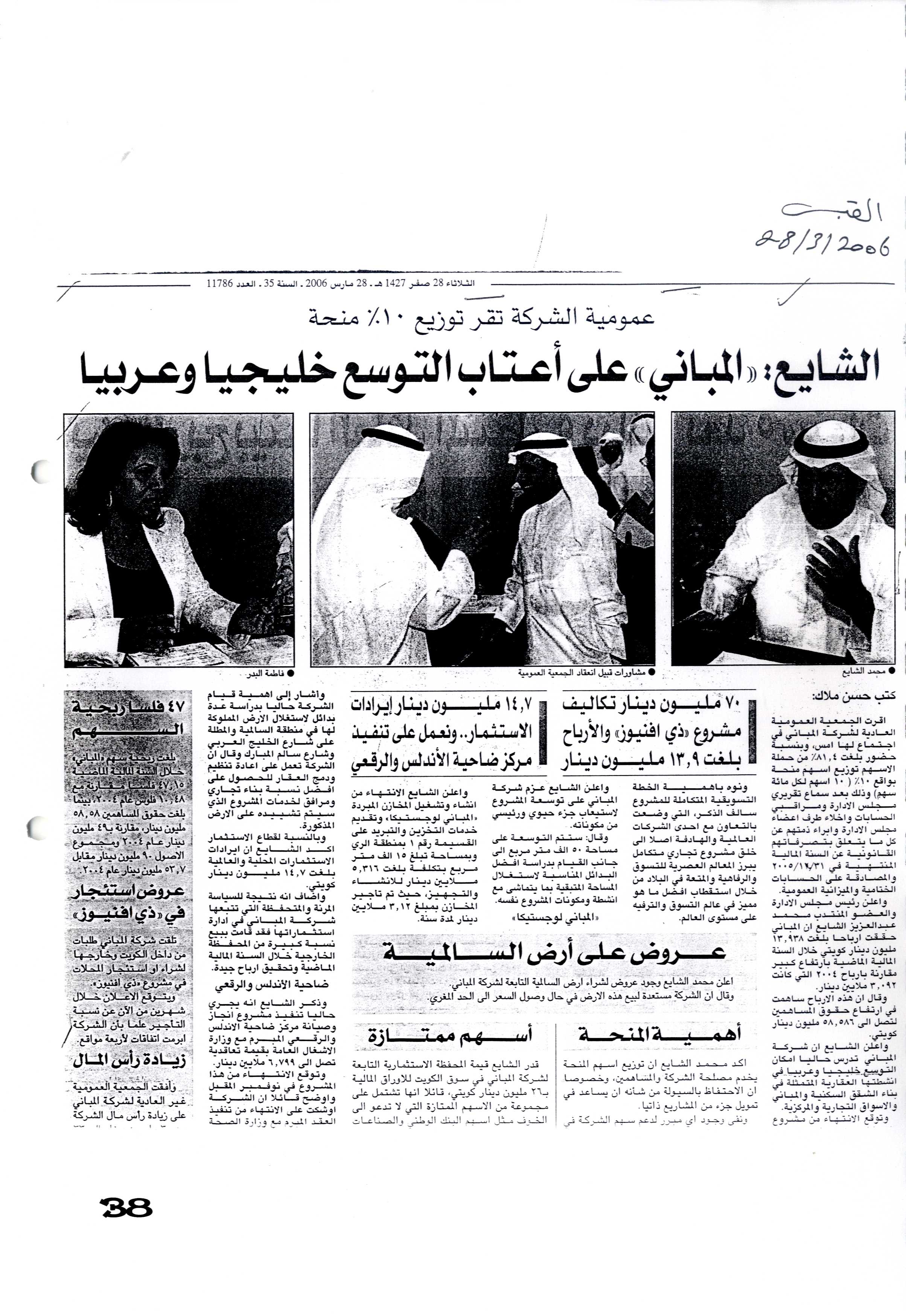 "المباني" 30 فلسا ربحية السهم و 10% منحة عن