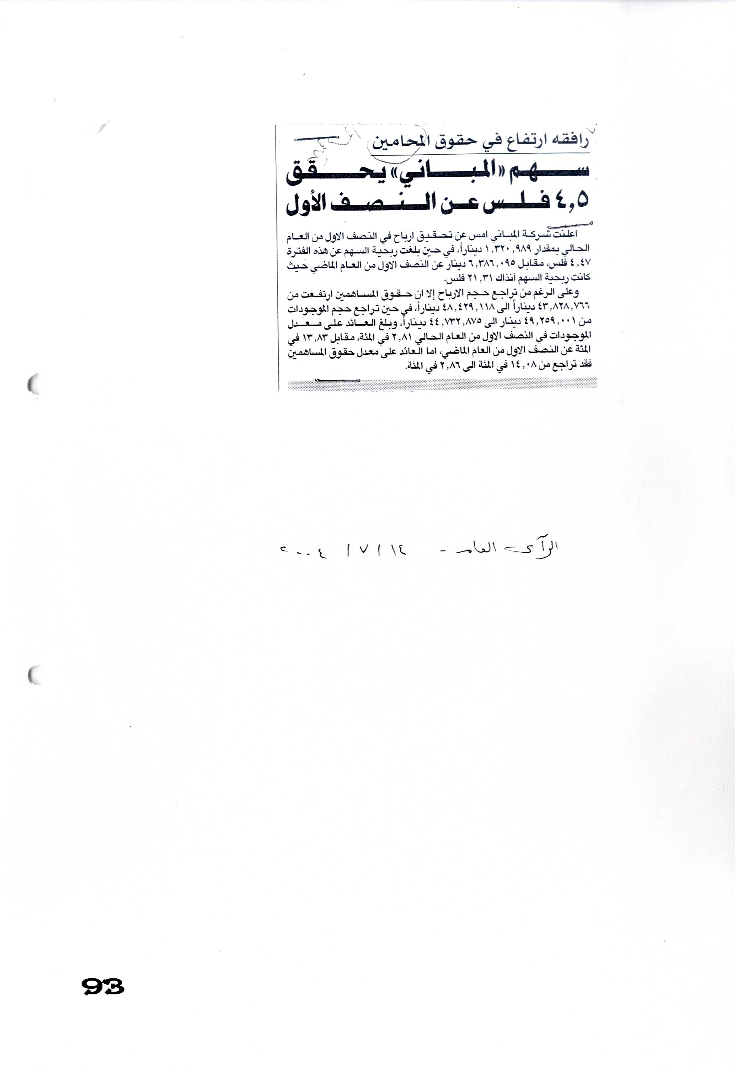 "المباني" حققت أرباحا 4.226 ملايـين دينار