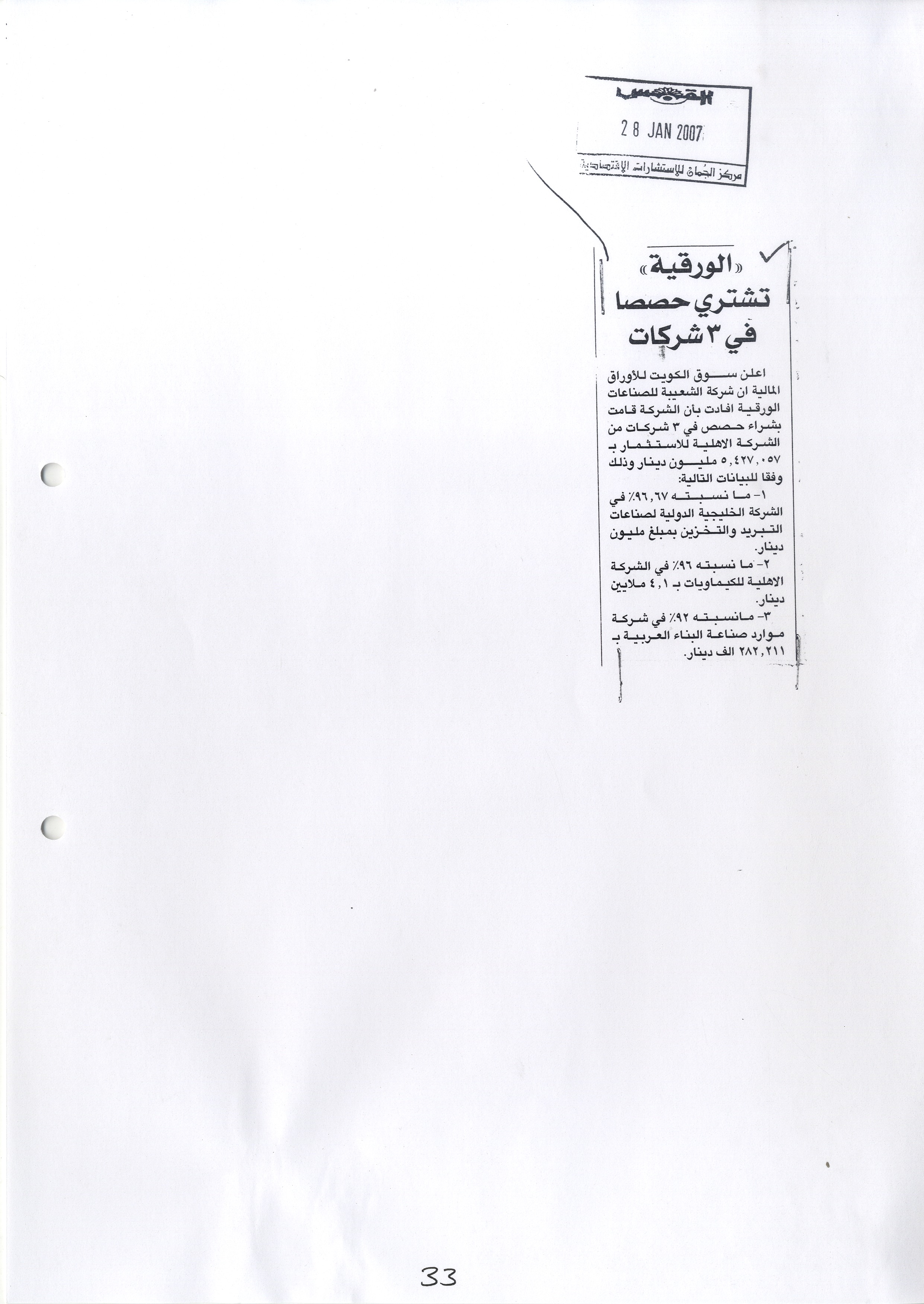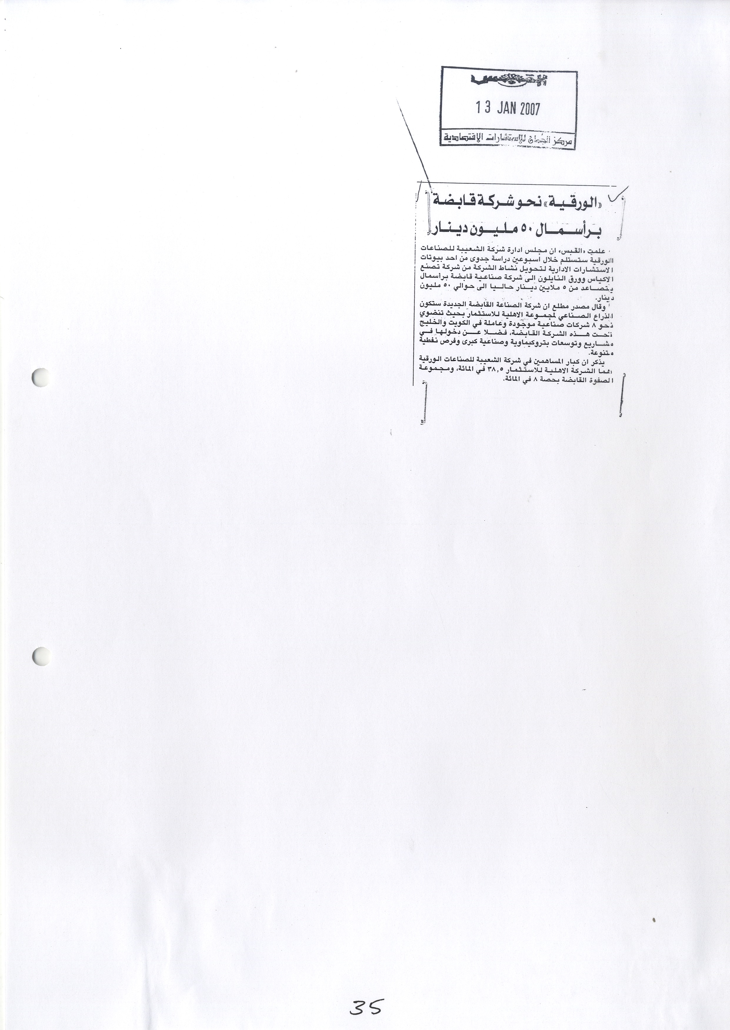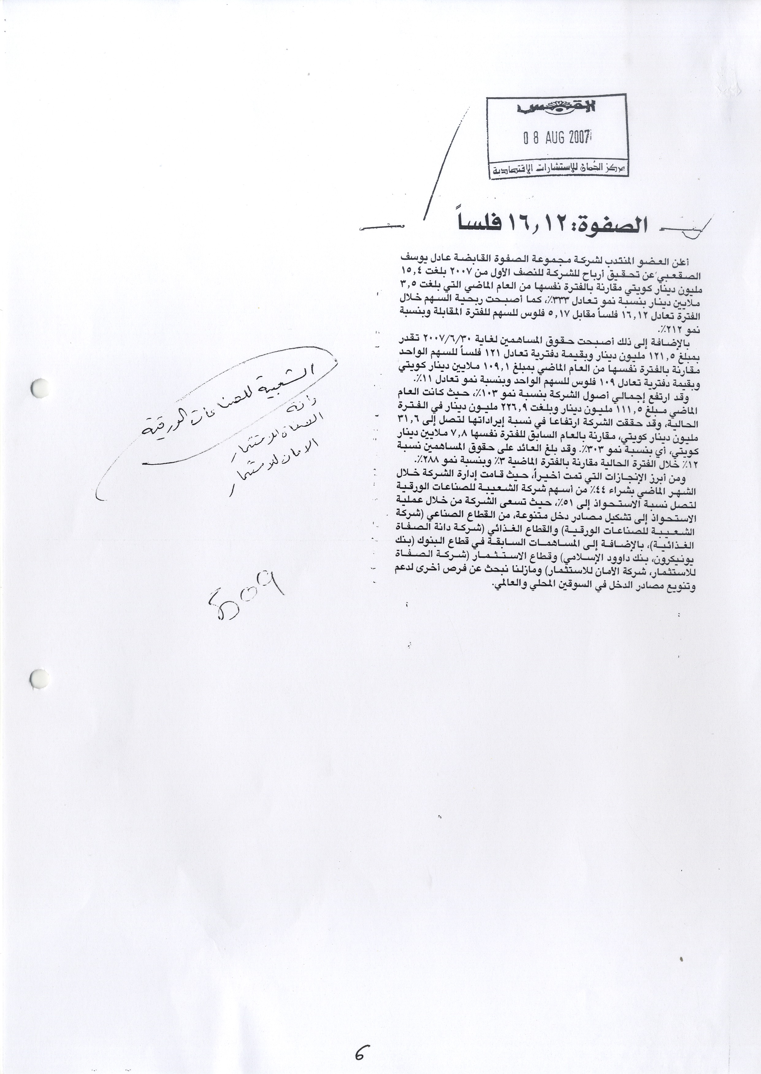 فهرس أخبار شركة الشعيبة الصناعية في بعض الصحف المحلية خلال الفترة من 11 ديسمبر 2001 إلى 26 أغسطس 2007