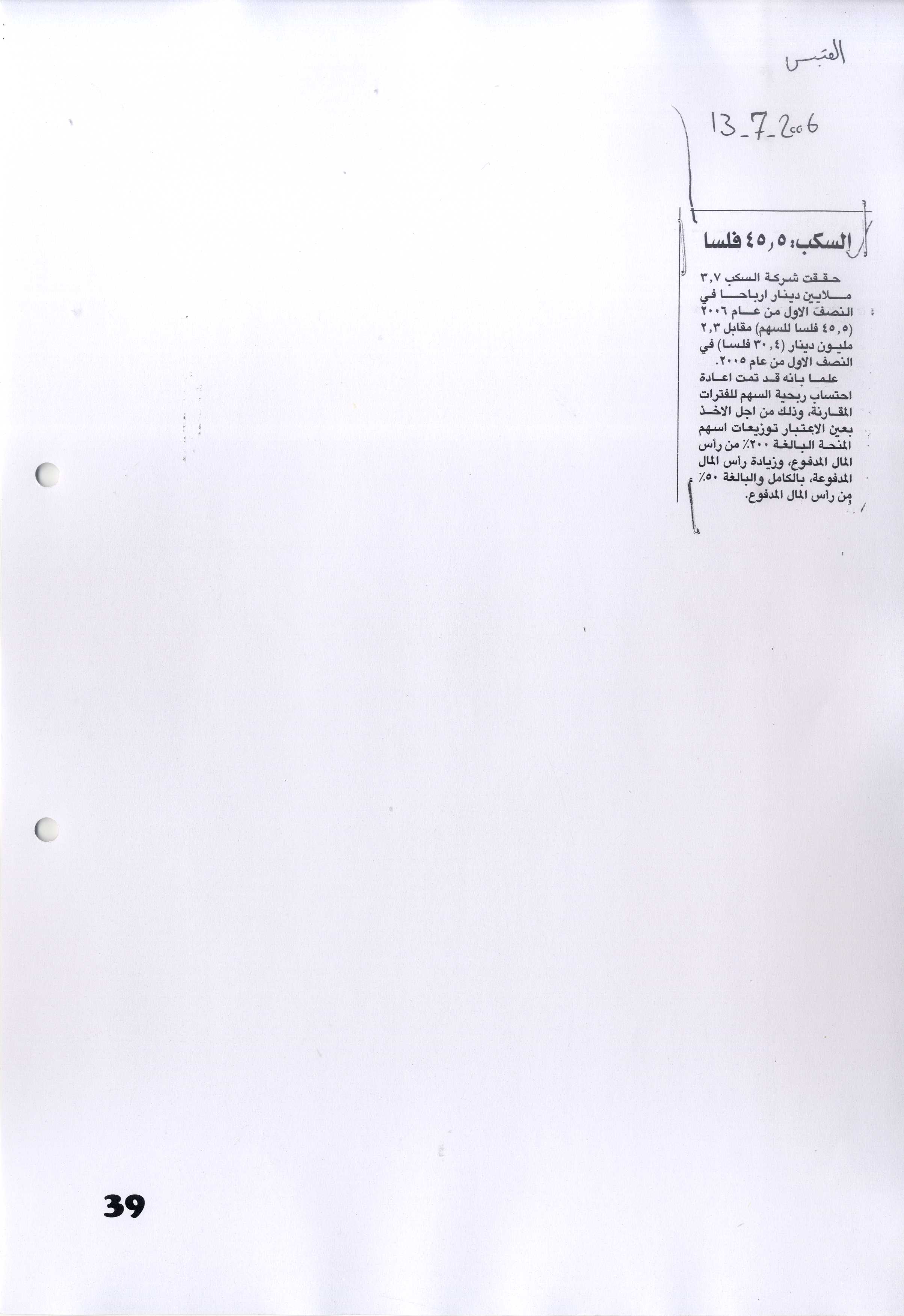 "سكب ك": إعلان تذكيري لحضور اجتماع الجمعية العمومية العادية والغير عادية للسنة المالية المنتهية في 2006/12/31 المقرر عقدها يوم 2007/4/7 |