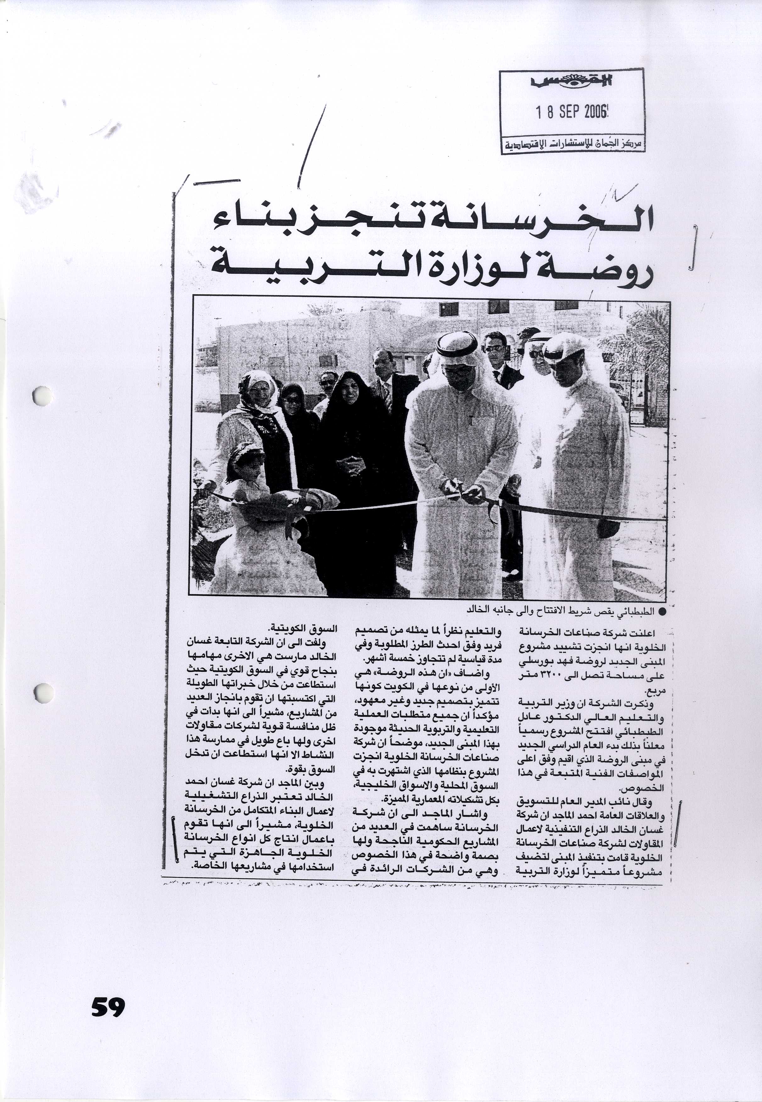 | 59 | القبس | 2006.09.18 | "خرسانة خ" تنجز بناء روضة لوزارة التربية |
