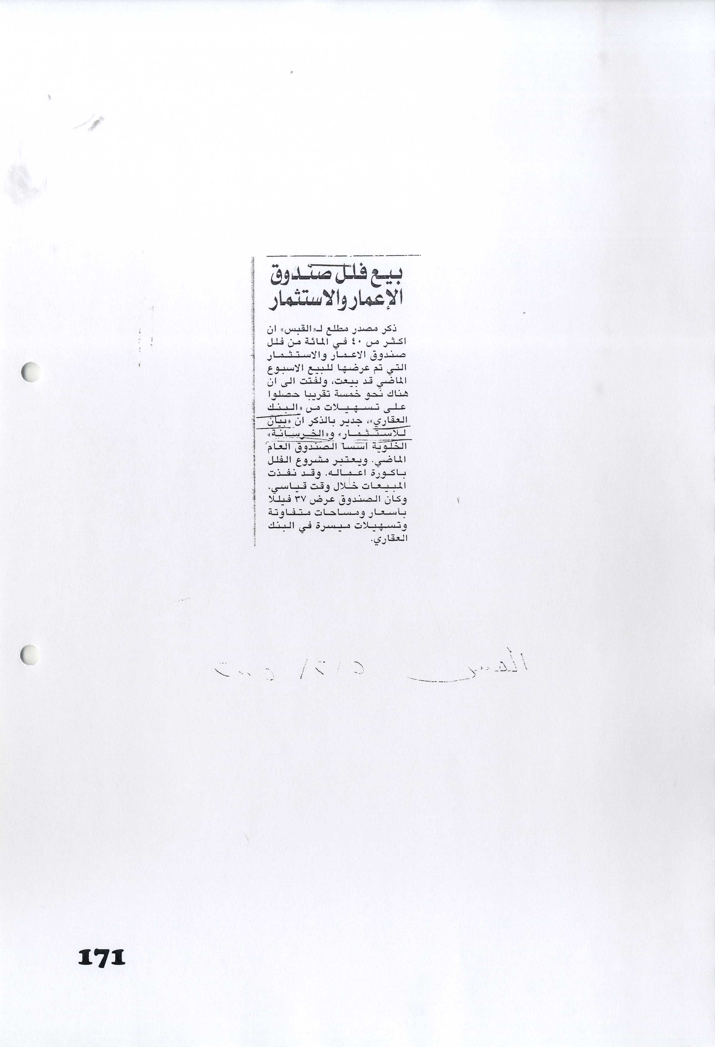 | 171 | القبس | 2005.02.05 | بيع فلل صندوق الإعمار والاستثمار بإدارة "خرسانة خ" |
