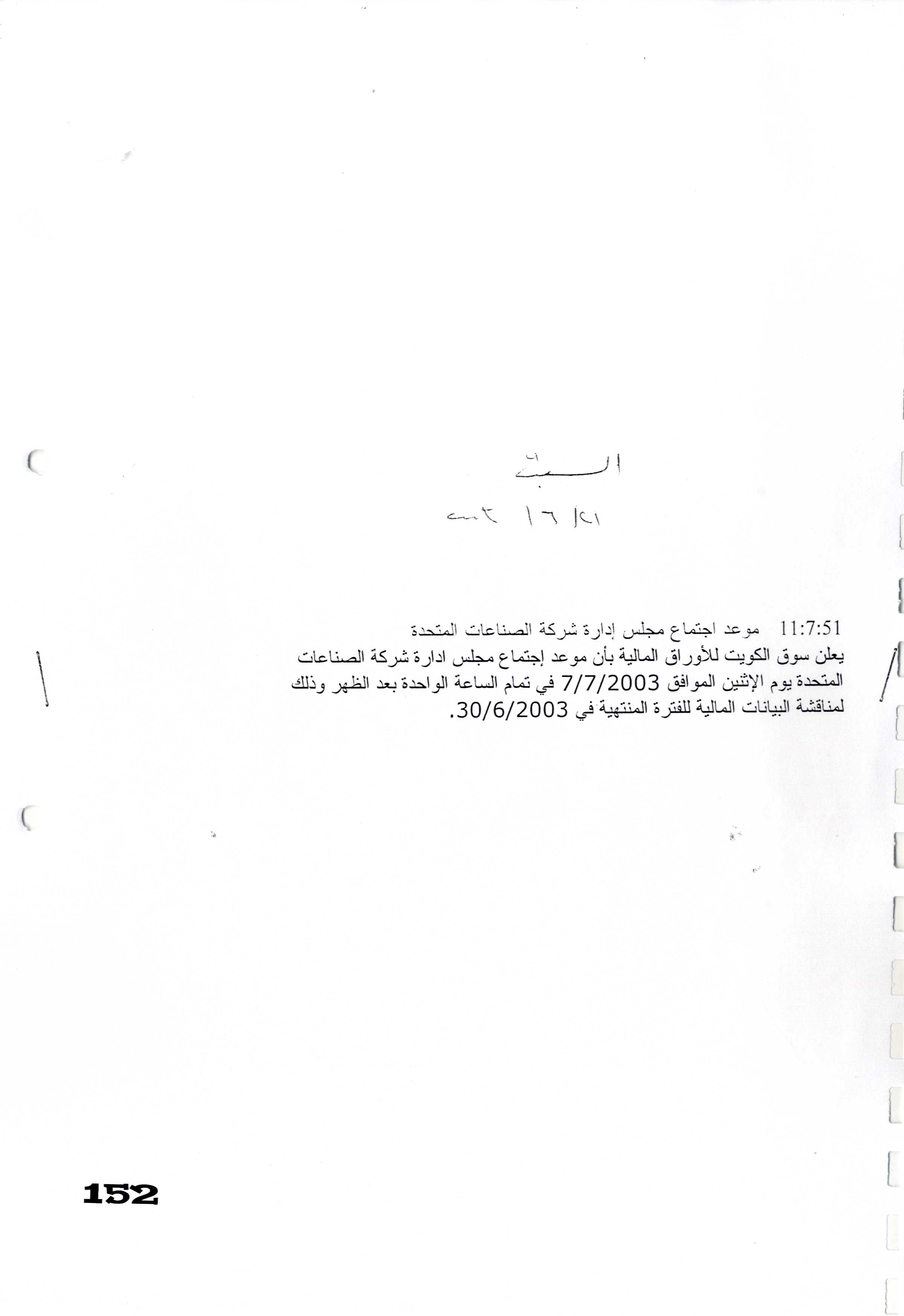 | 152 | القبس | 2003.06.21 | موعد اجتماع مجلس إدارة "ص متحدة" يوم 2003/7/7 |