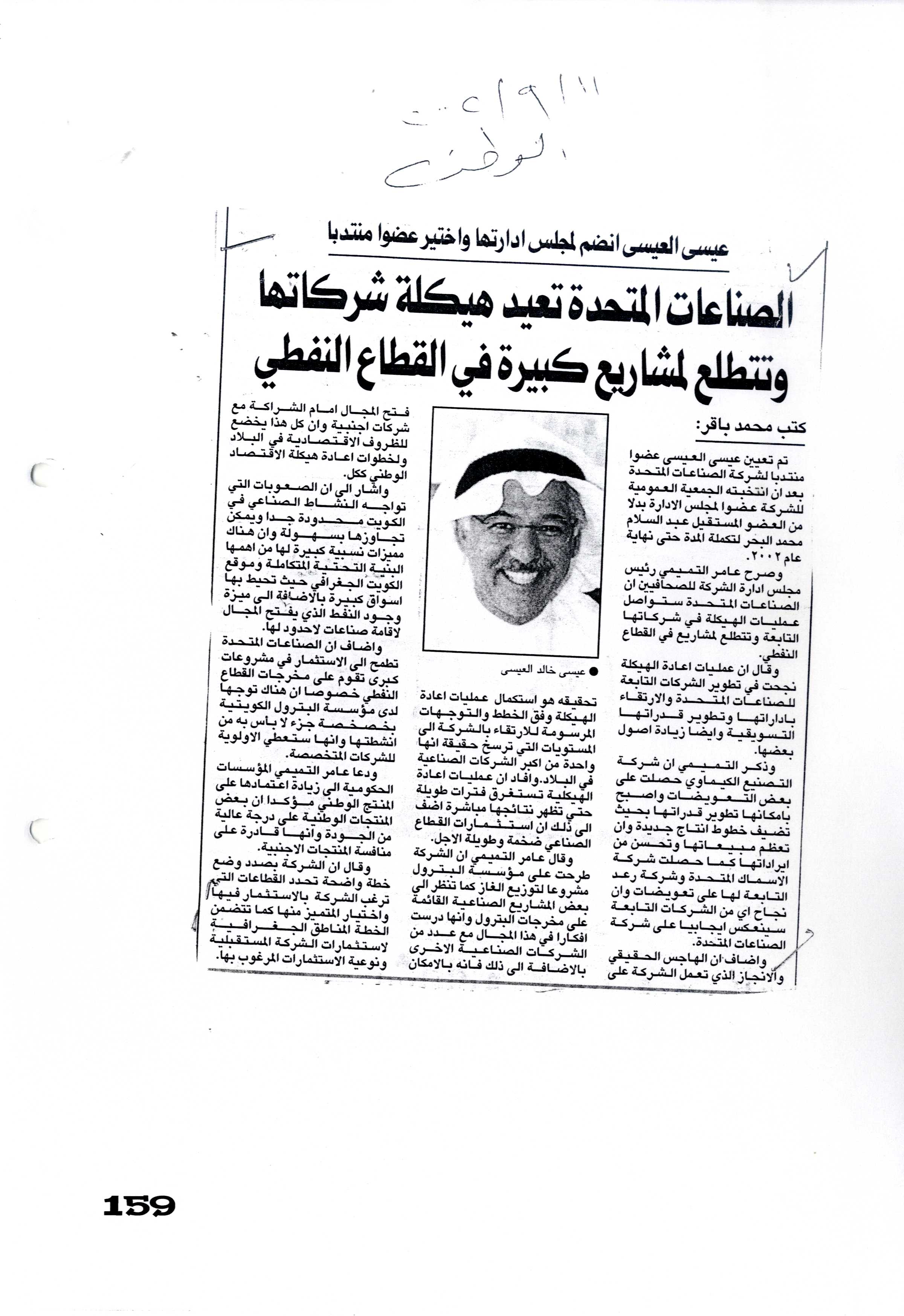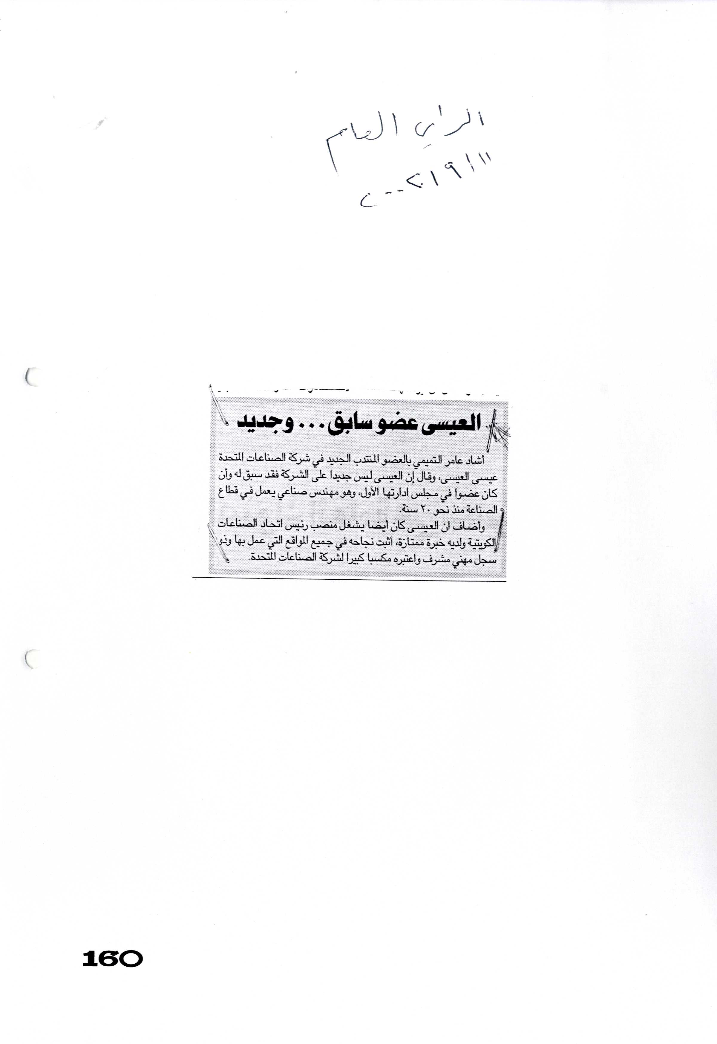 | 161 | الراي | 2002.09.10 | عيسى العيسى عضوا منتدبا في شركة "ص متحدة" |