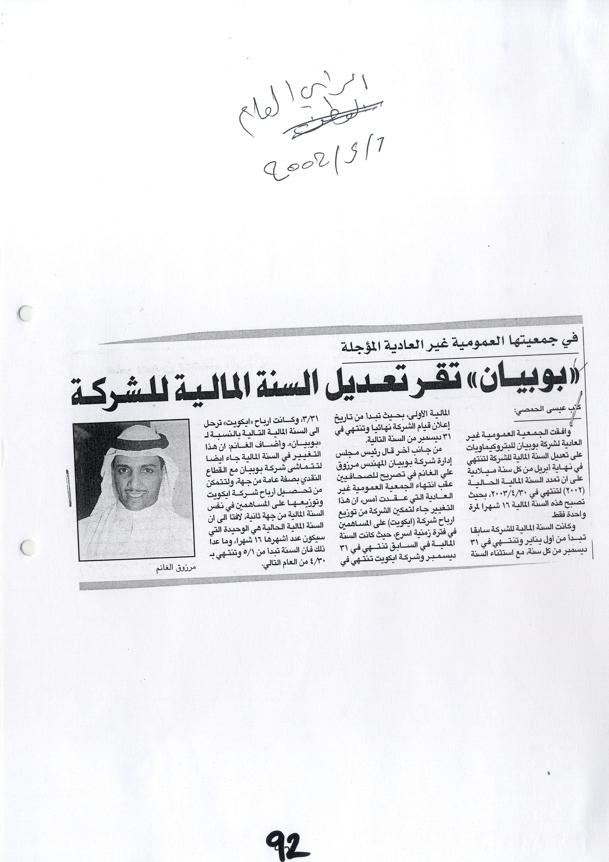 "بوبيان ب" : دعوة لحضور اجتماع الجمعية العامة العادية للسنة المالية المنتهية في 30 أبريل 2003
