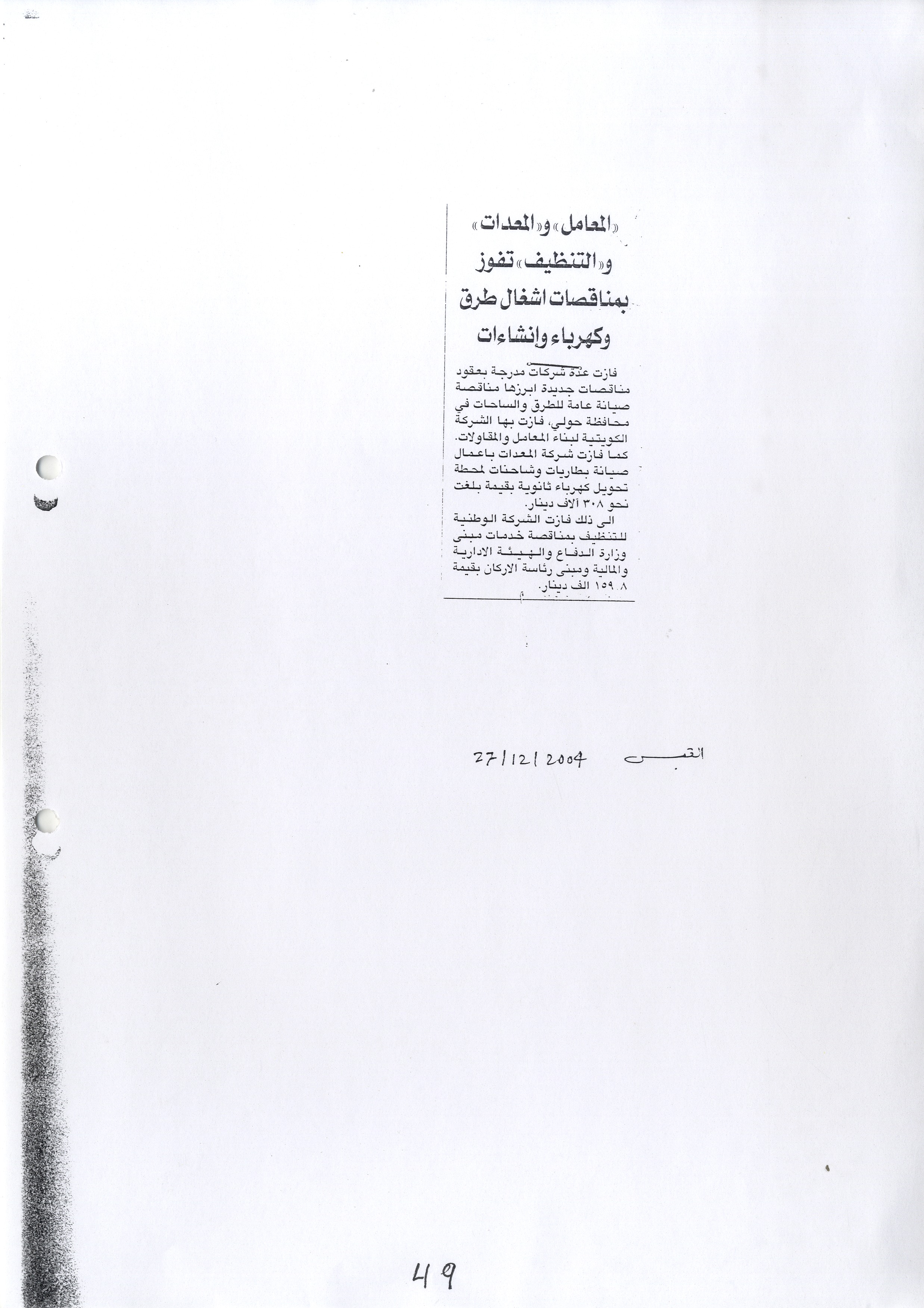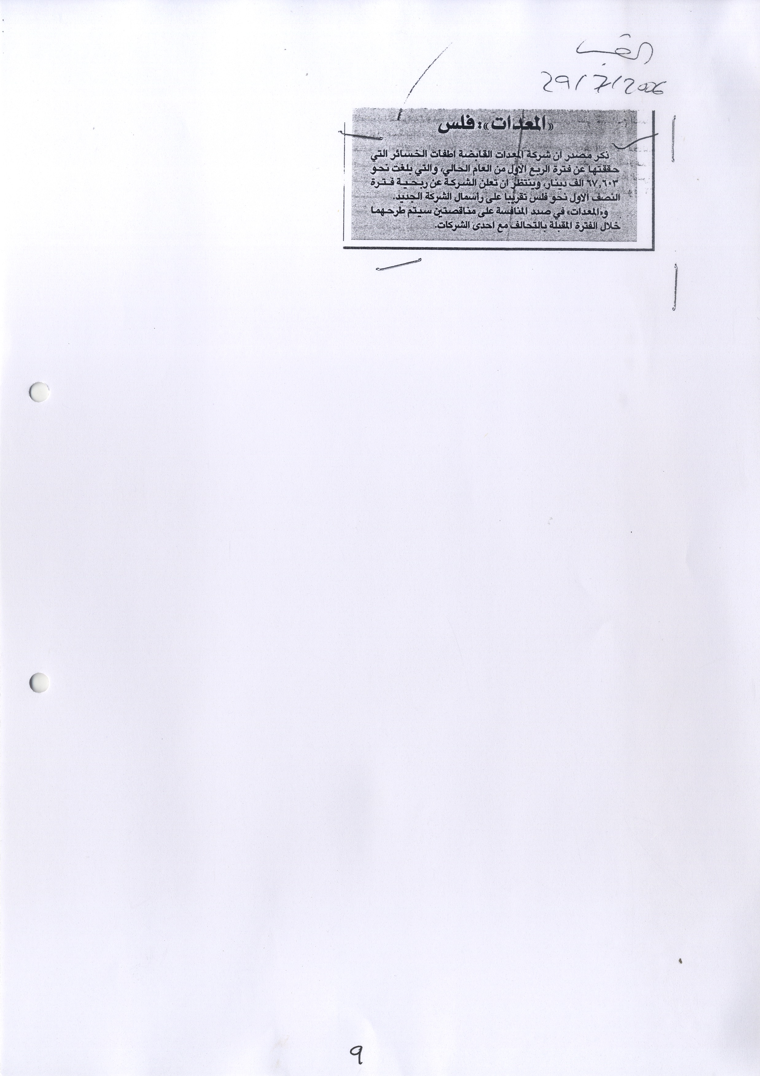 فهرس أخبار شركة المعدات القابضة في بعض الصحف المحلية خلال الفترة من 9 نوفمبر 2004 إلي 26 ديسمبر 2006