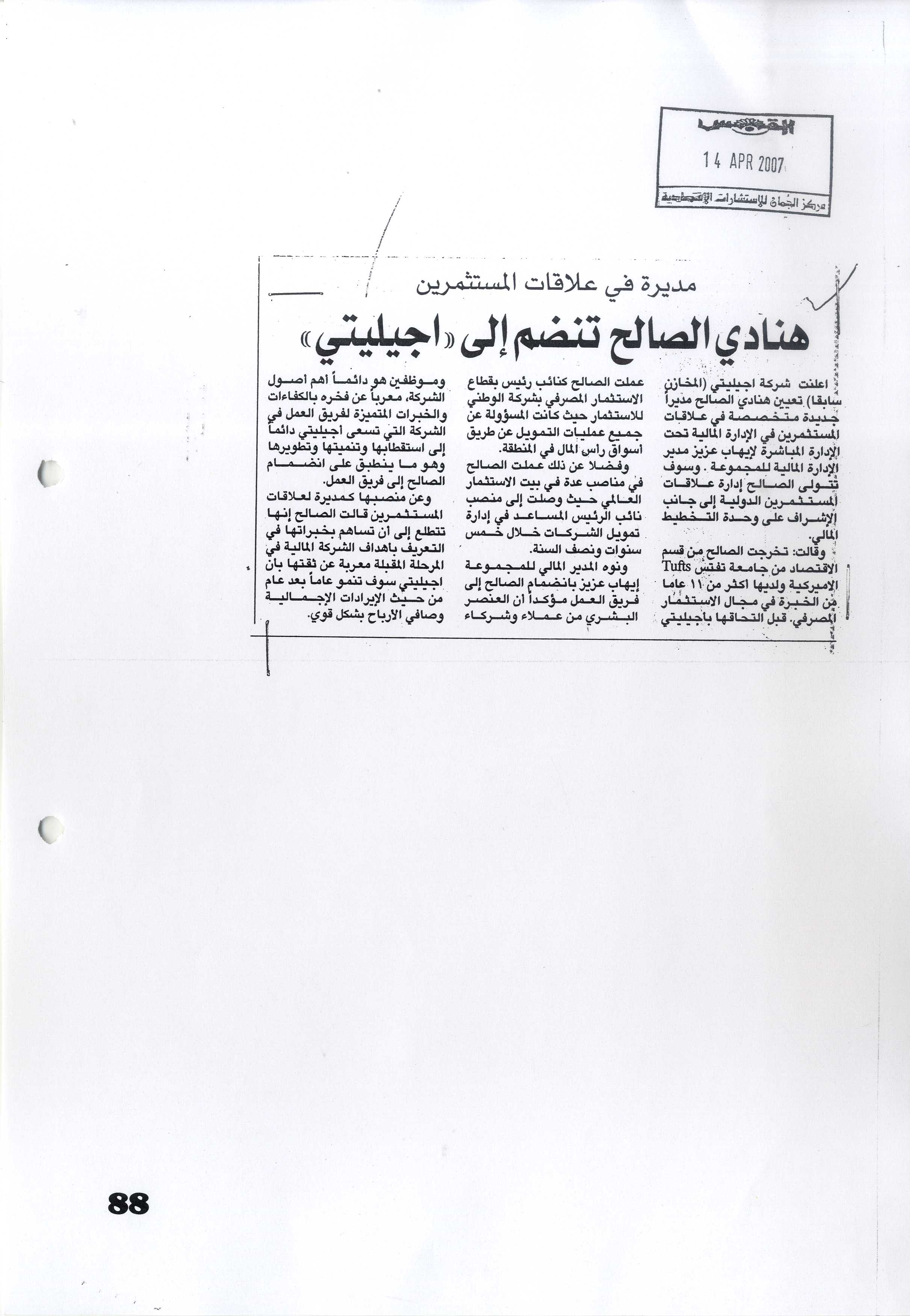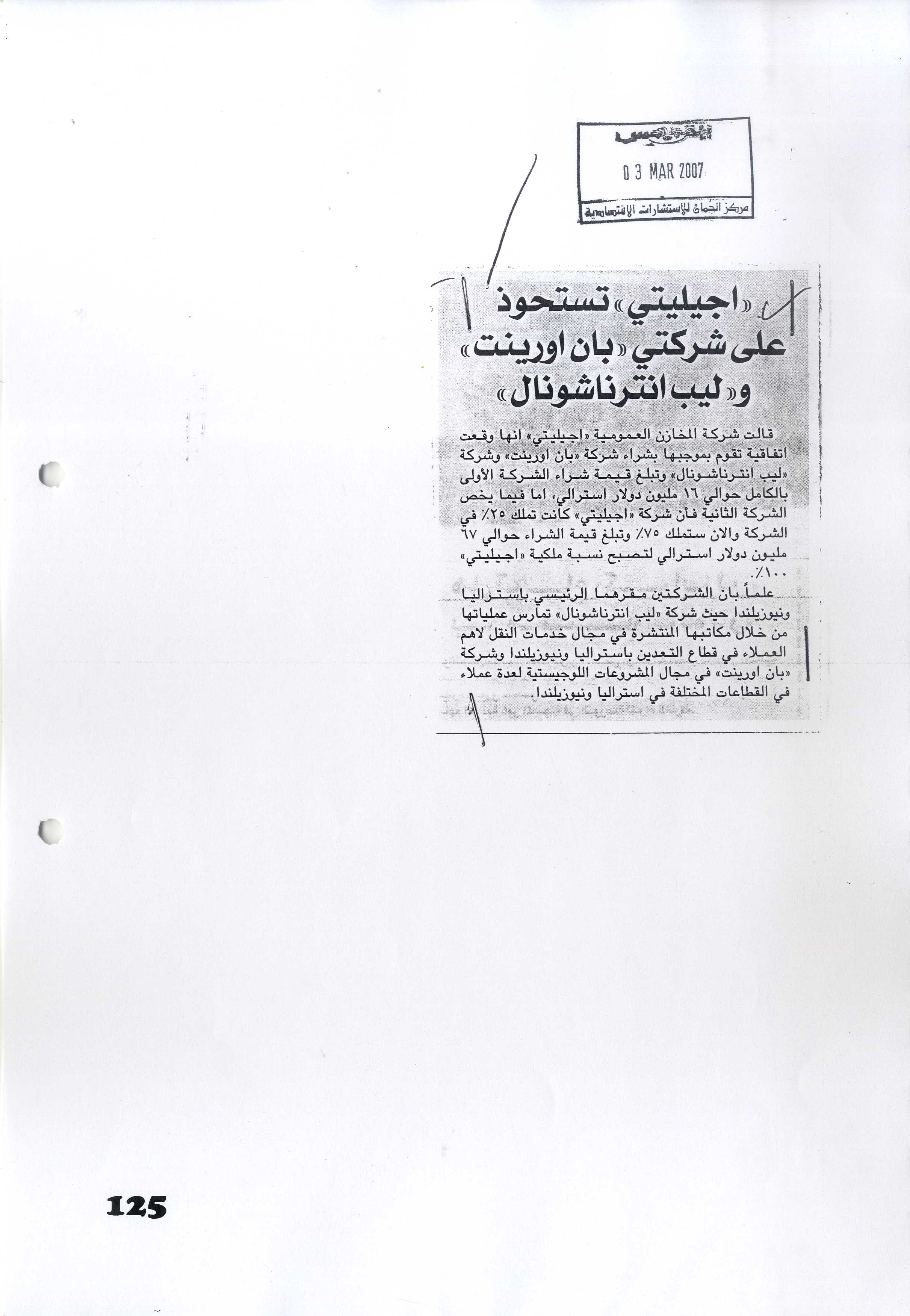إعلان دعوة من "أجيليتي" لحضور اجتماع الجمعية العامة غير العادية في 2007/7/16 |