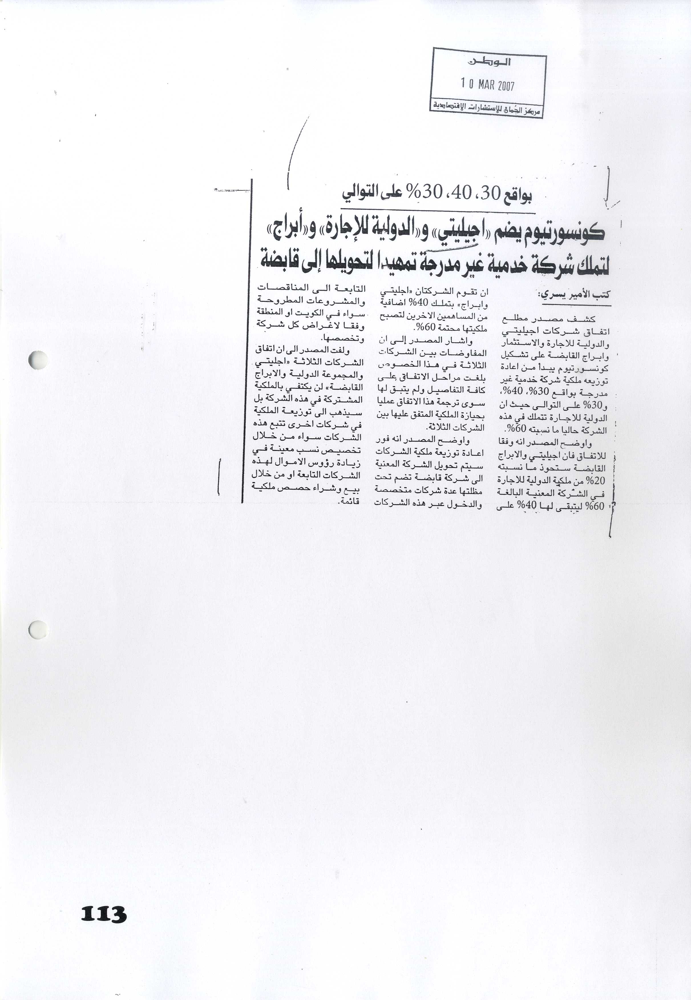 إعلان الأرباح: حققت "أجيليتي" نمواً ملحوظاً للعوائد لتتخطى 82 مليون دك خلال النصف الأول للعام 2006 |