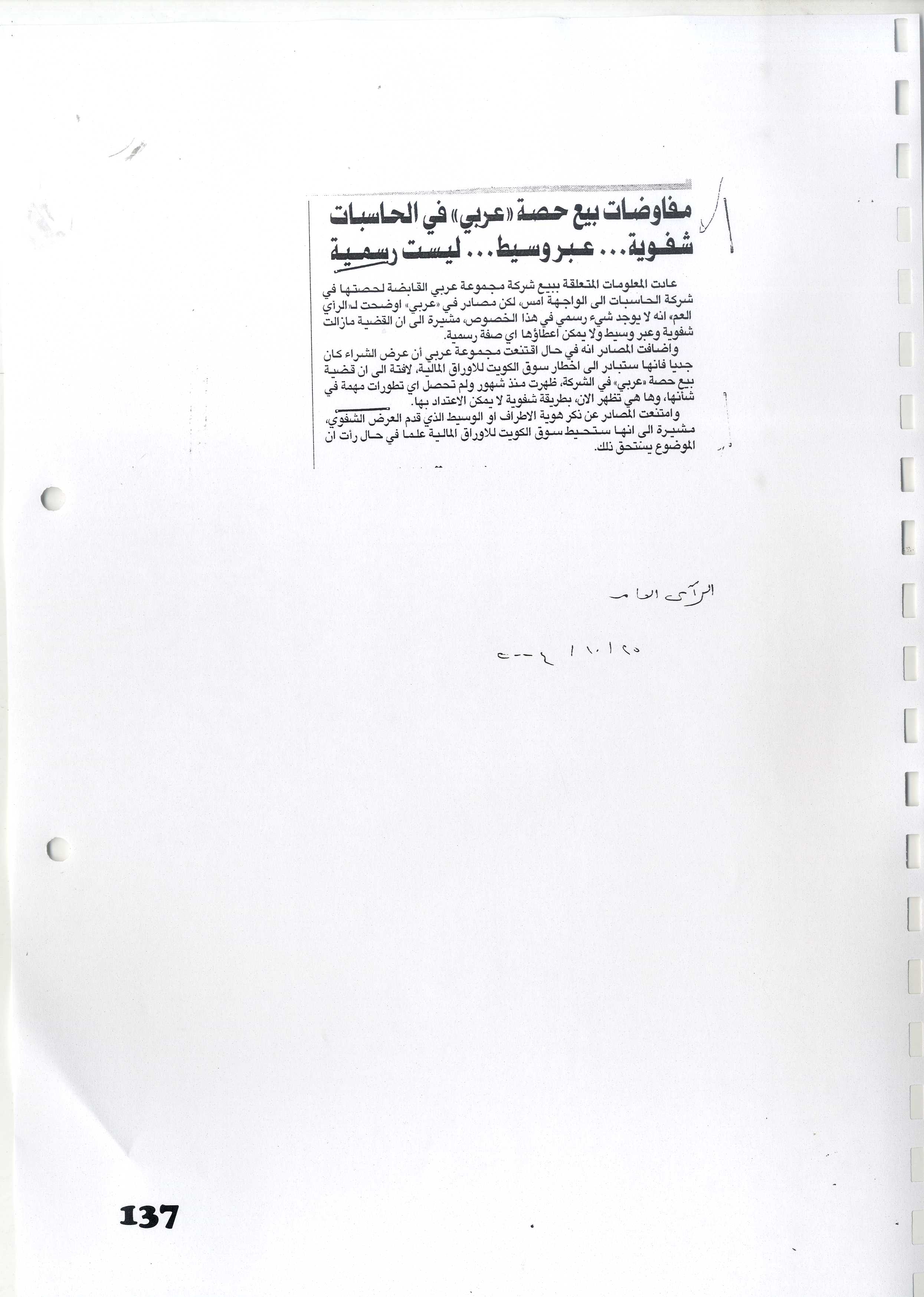 البسام : خسارة "الحاسبات" أثرت سلبا على "عربي القابضة" |