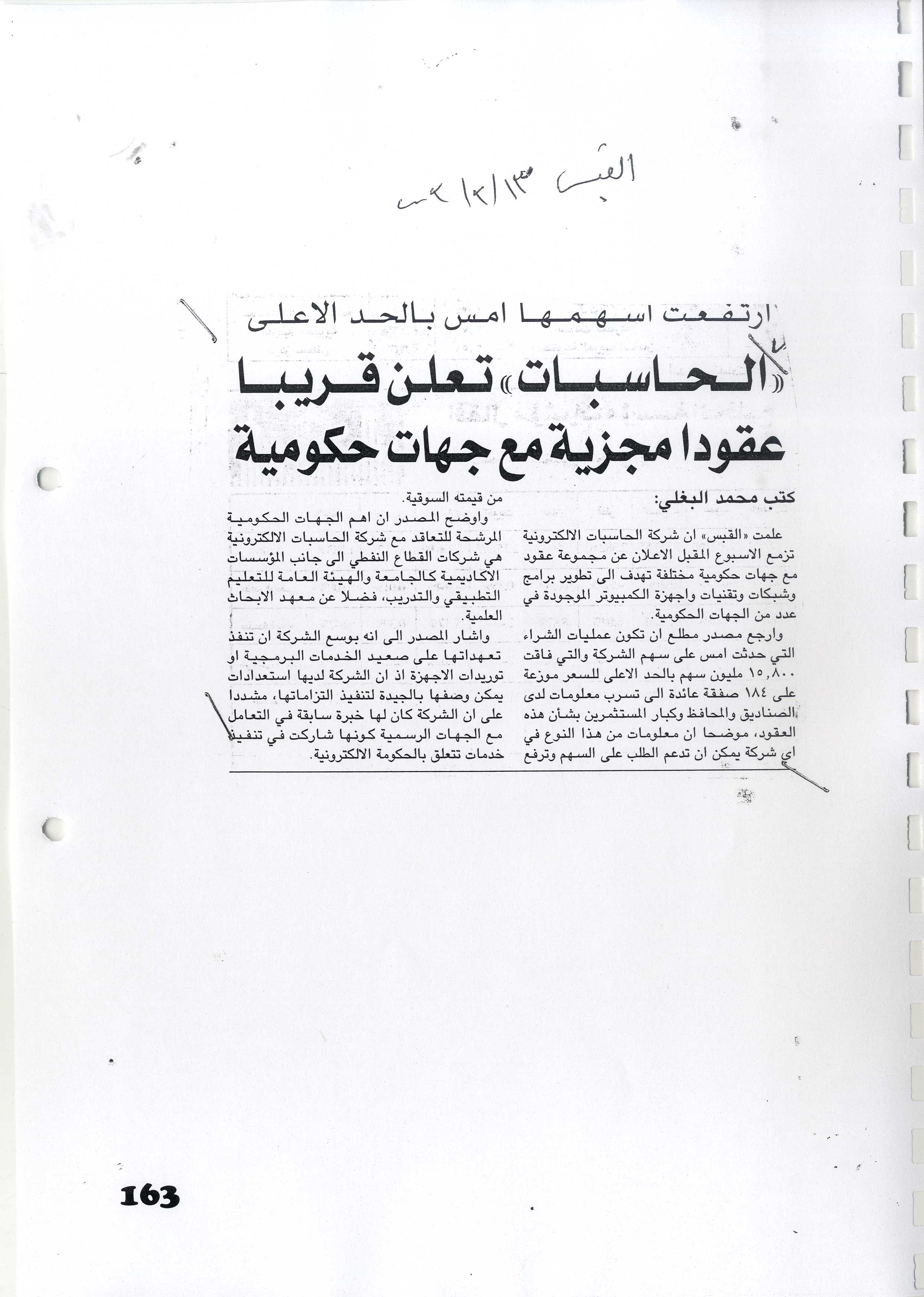 "الحاسبات" تستعد لتوقيع عقود مع جهات حكومية وخاصة |