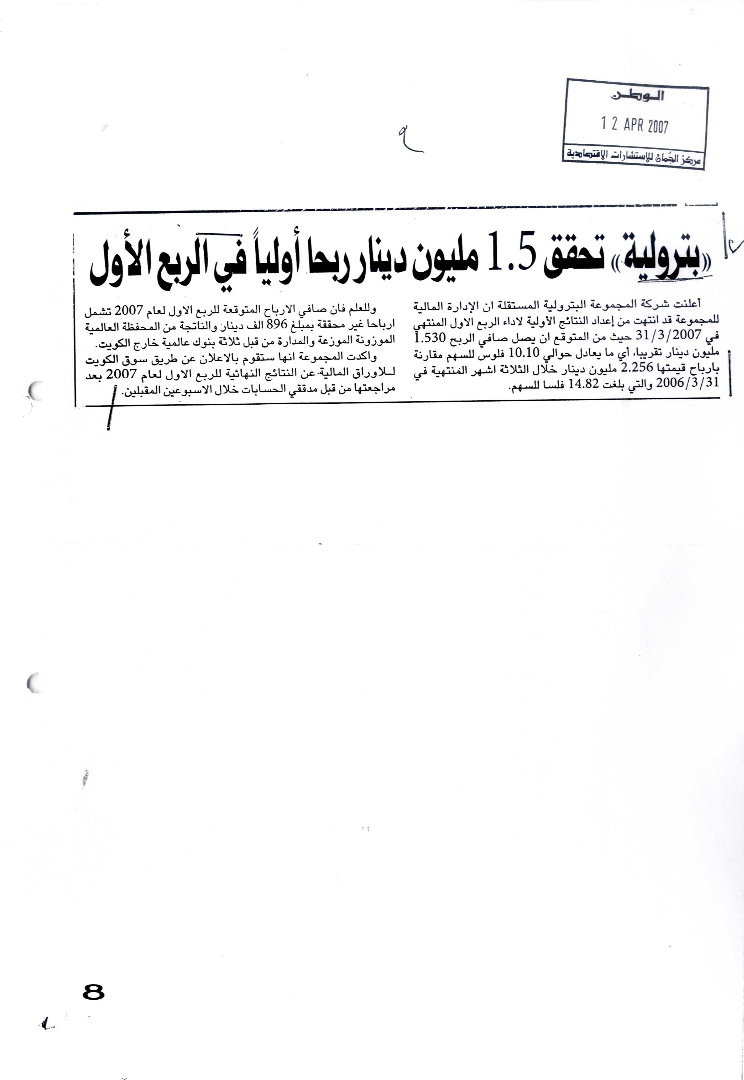 "بتروليـــة" : 10.1 فلـــوس في الربع الأول من 2007