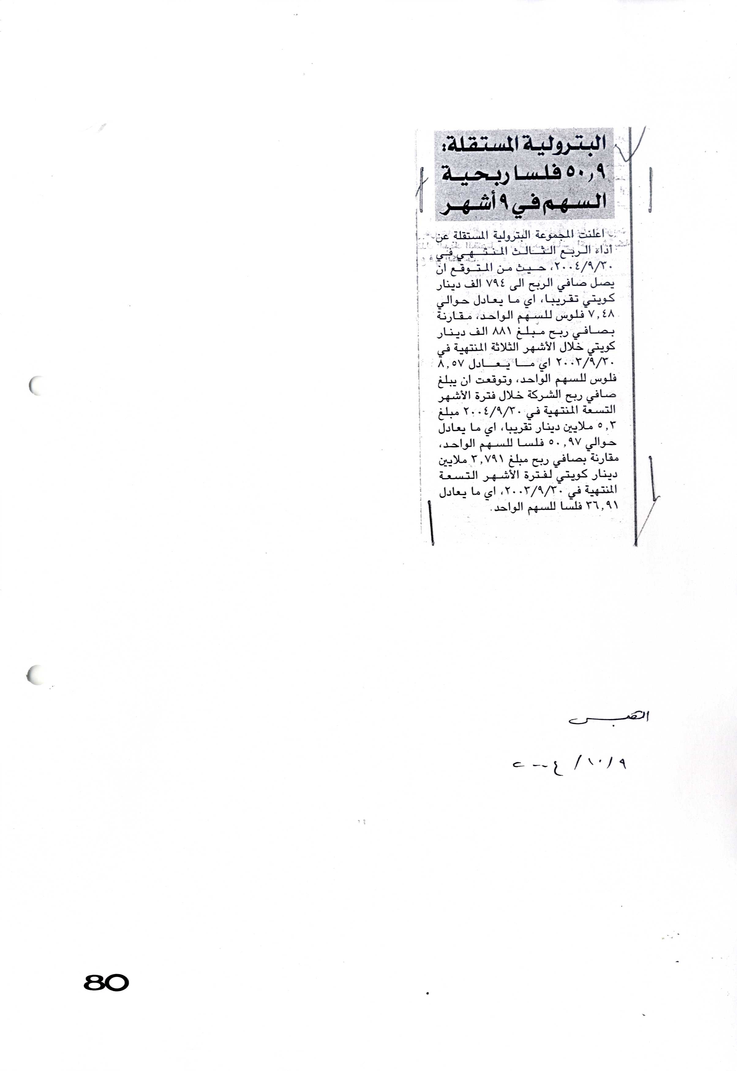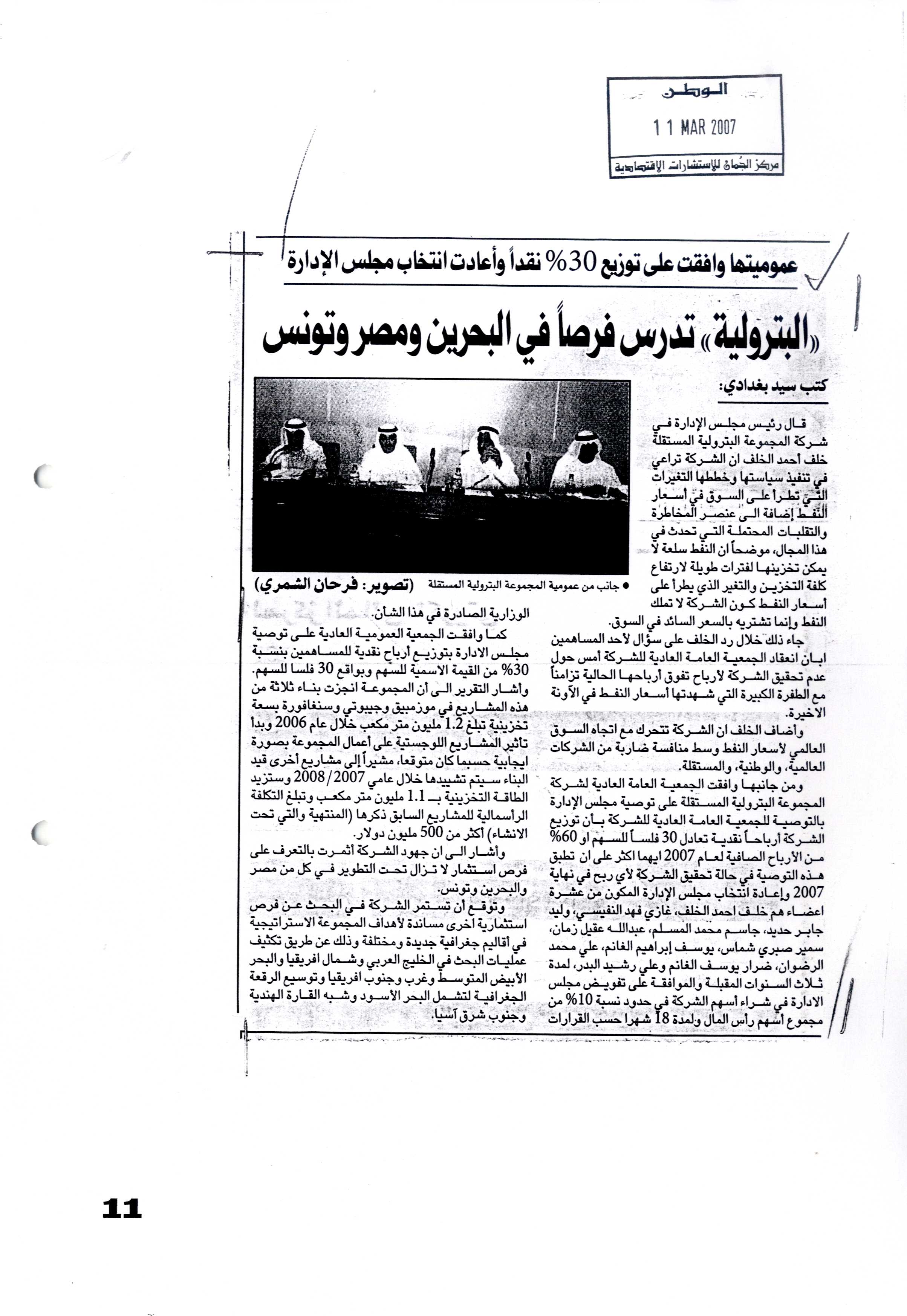 فهرس أرشيف أخبار "المجموعة البترولية المستقلة" في بعض الصحف المحلية خلال الفترة من 19 أغسطس 2001 إلى 10 أكتوبر 2007