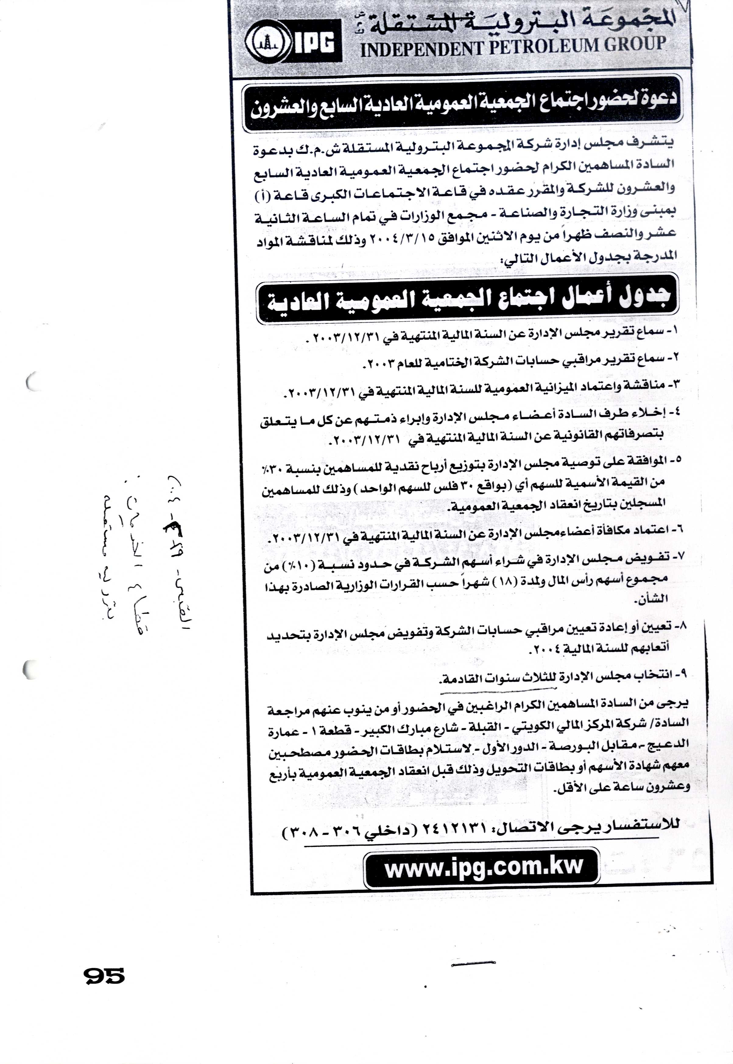 دعوة من "بتروليـــة" لمساهميها الكراملحضور إجتماع الجمعية العامة العادية