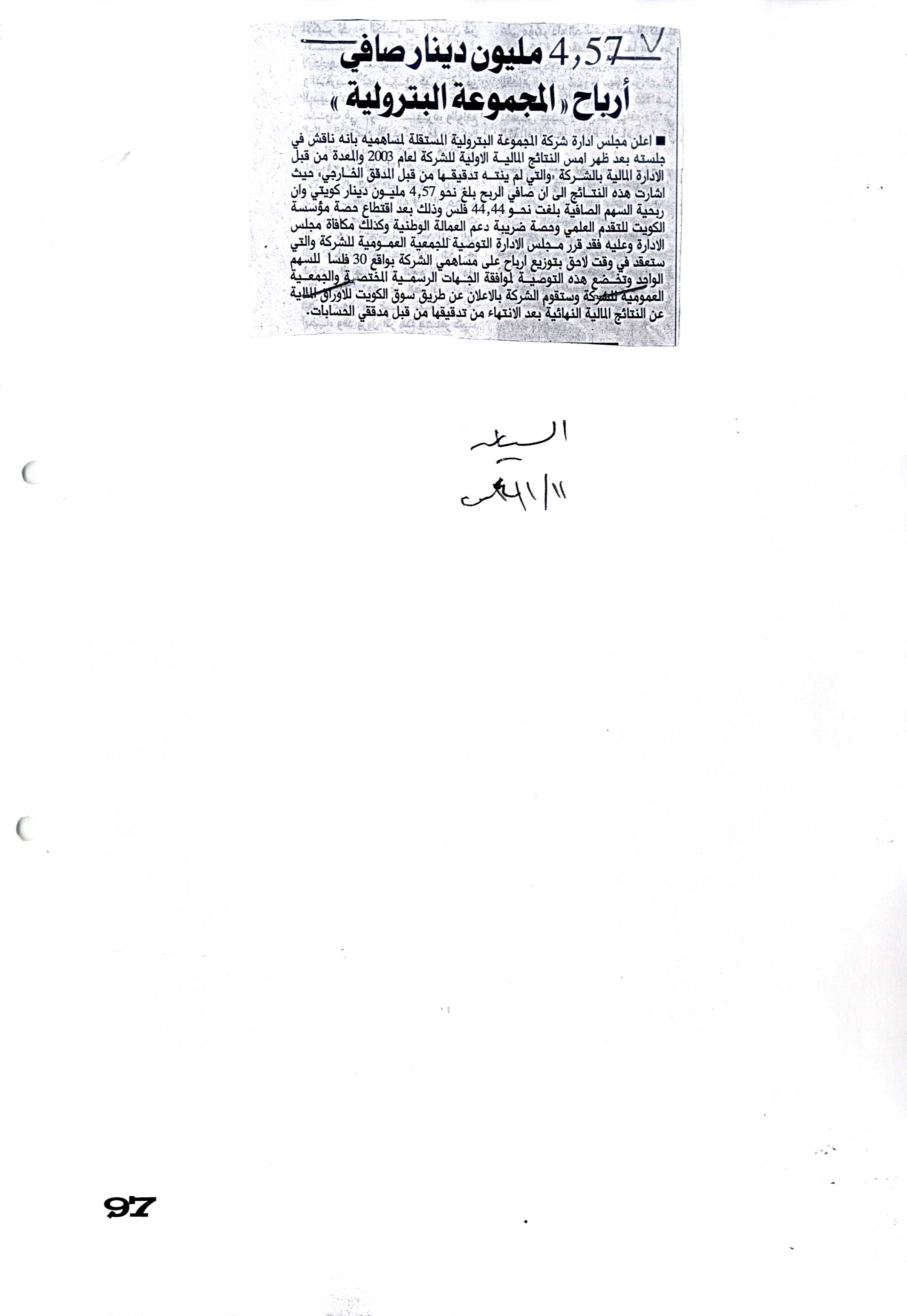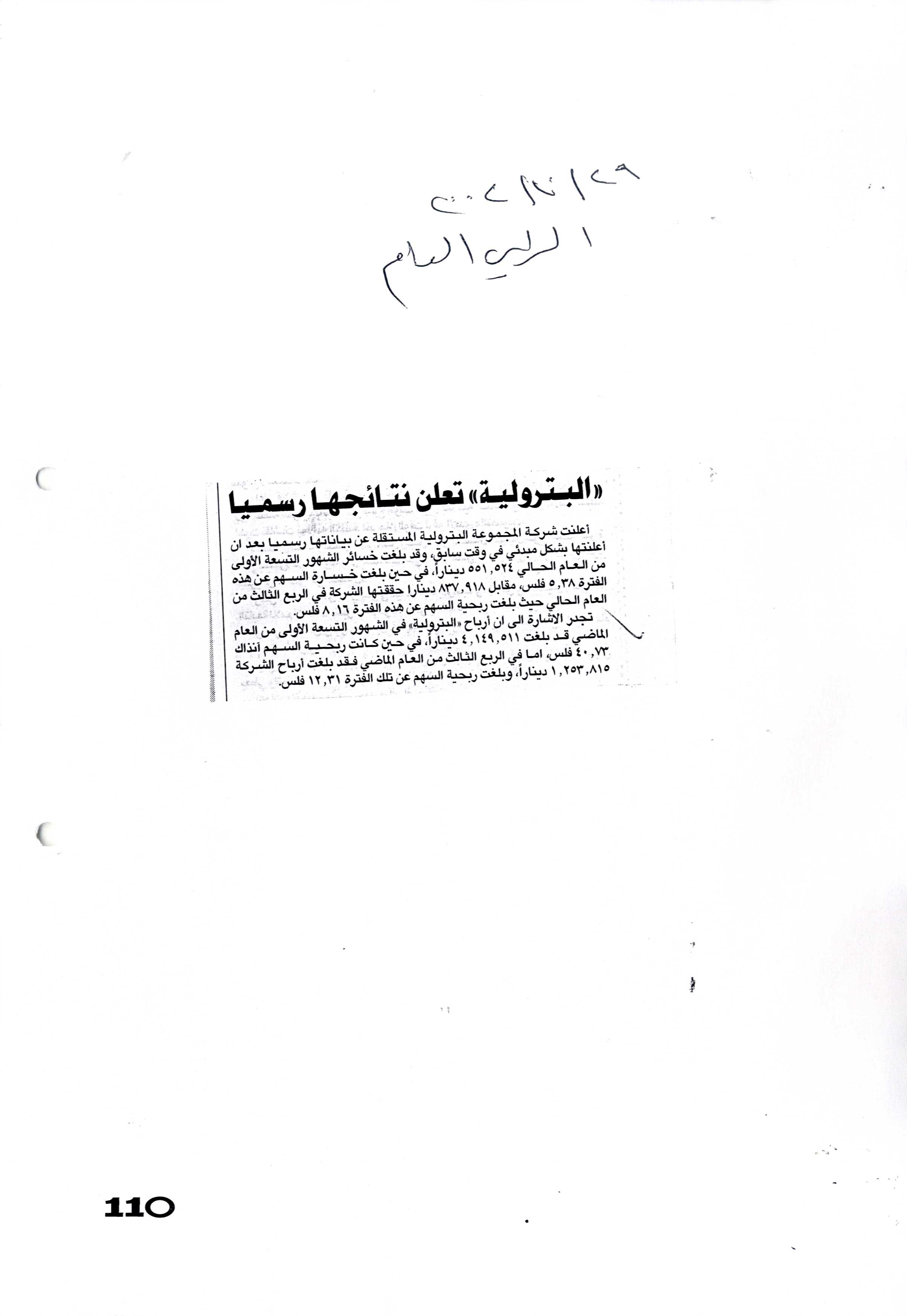 بيان صحفي عن الربع الثالث لـ "بتروليـــة"