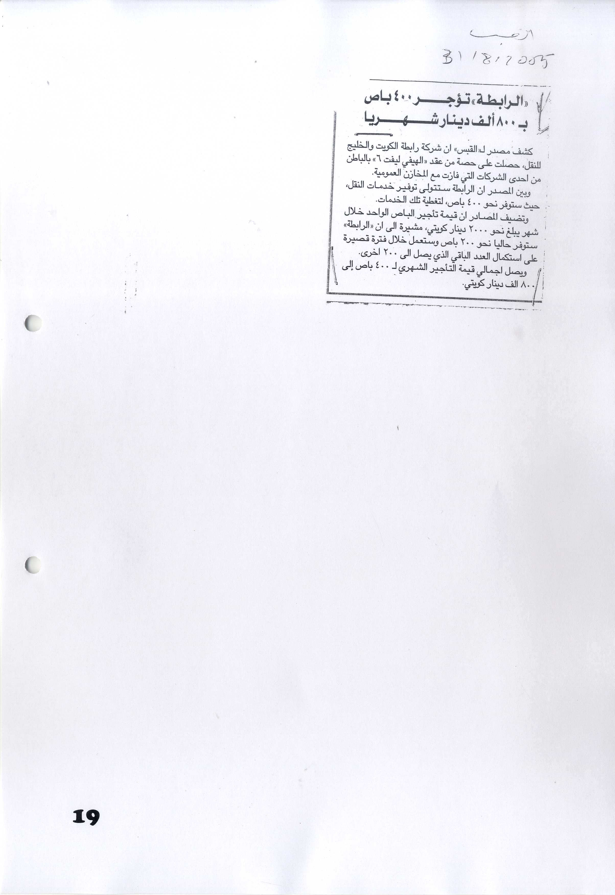 من المقرر أن تعقد الجنة التأسيسية الملكلفة بتأسيس شركة نقل بري جديدة برأسمال مليون دينار كويتي اجتماعاً لها |