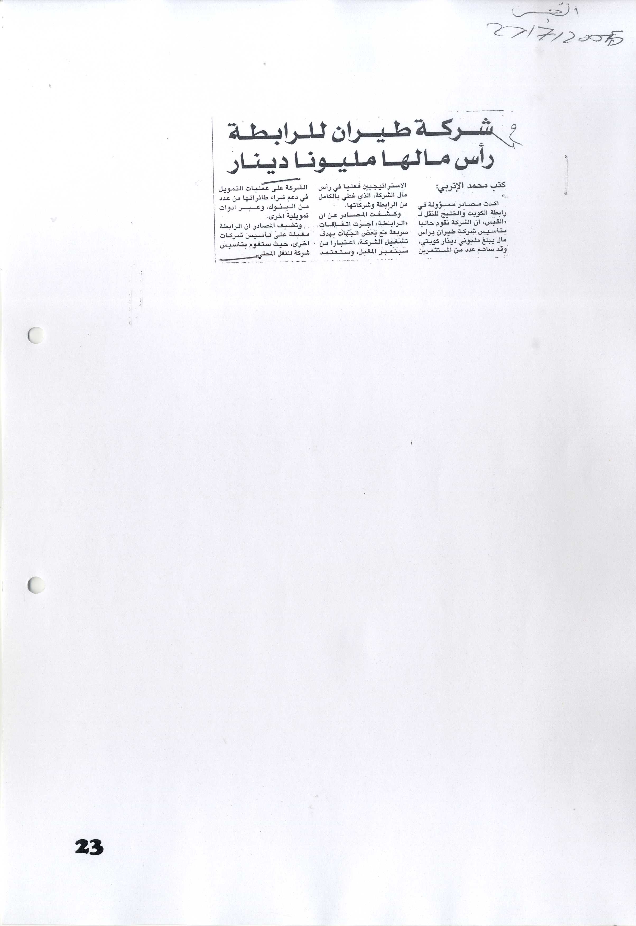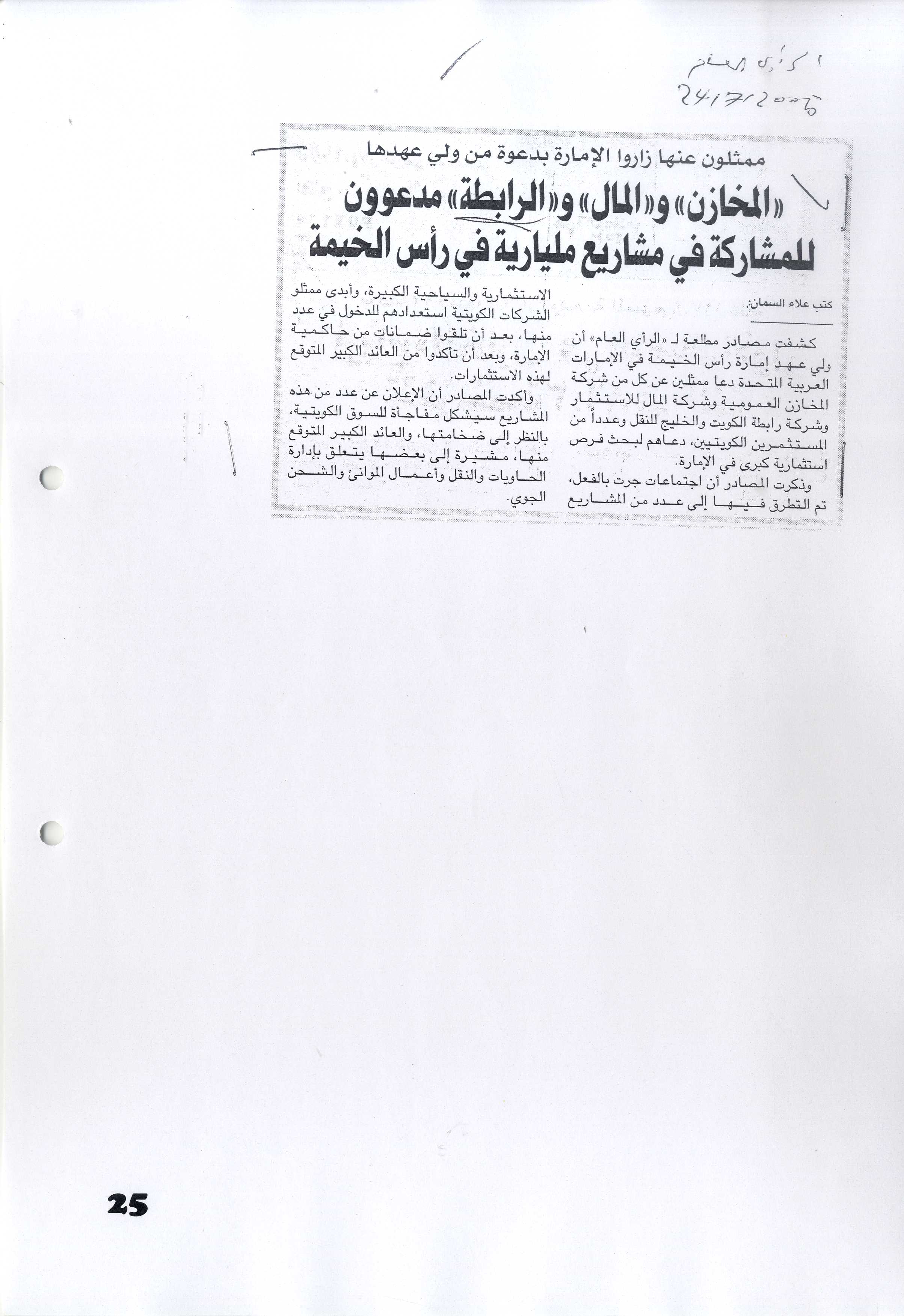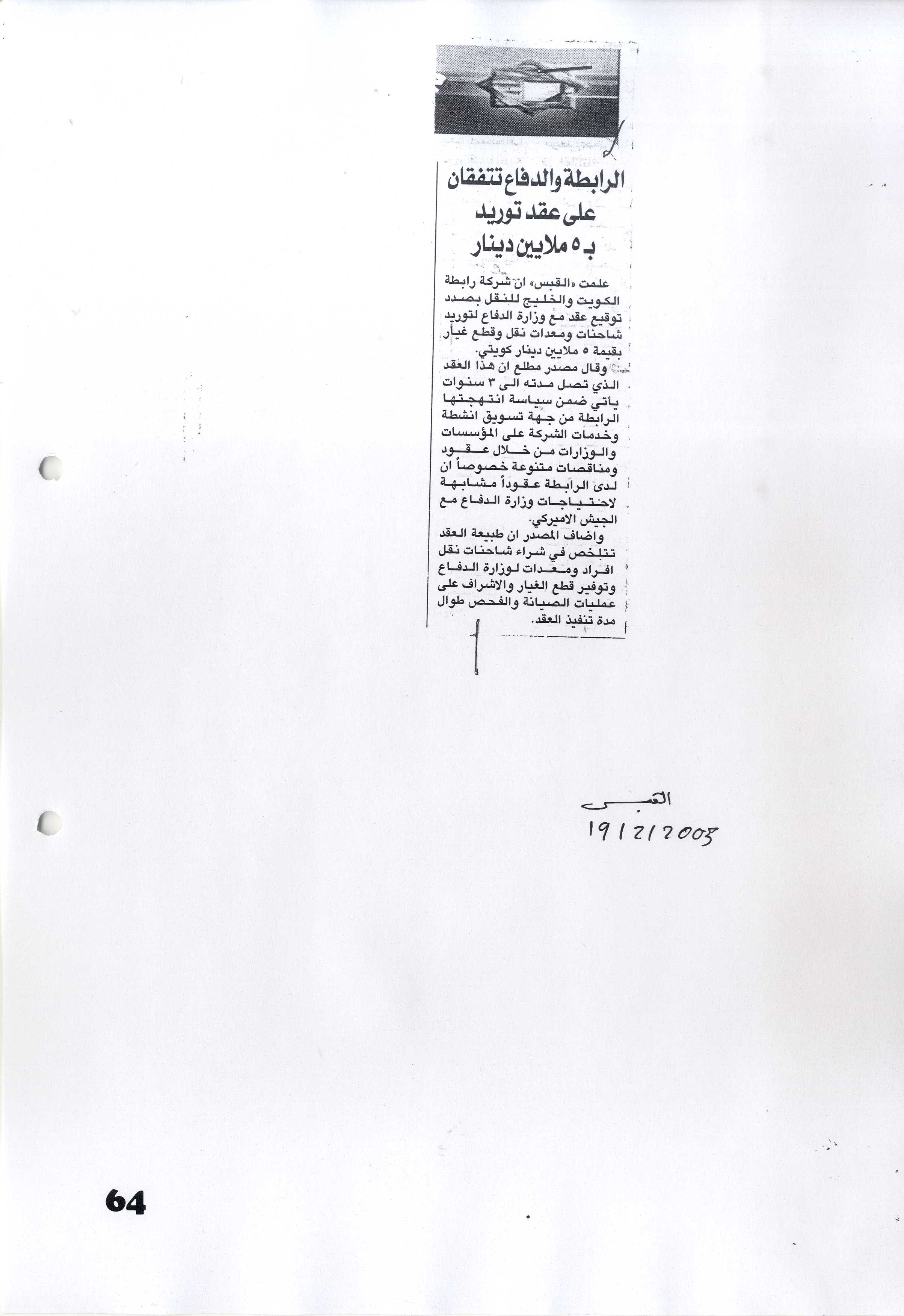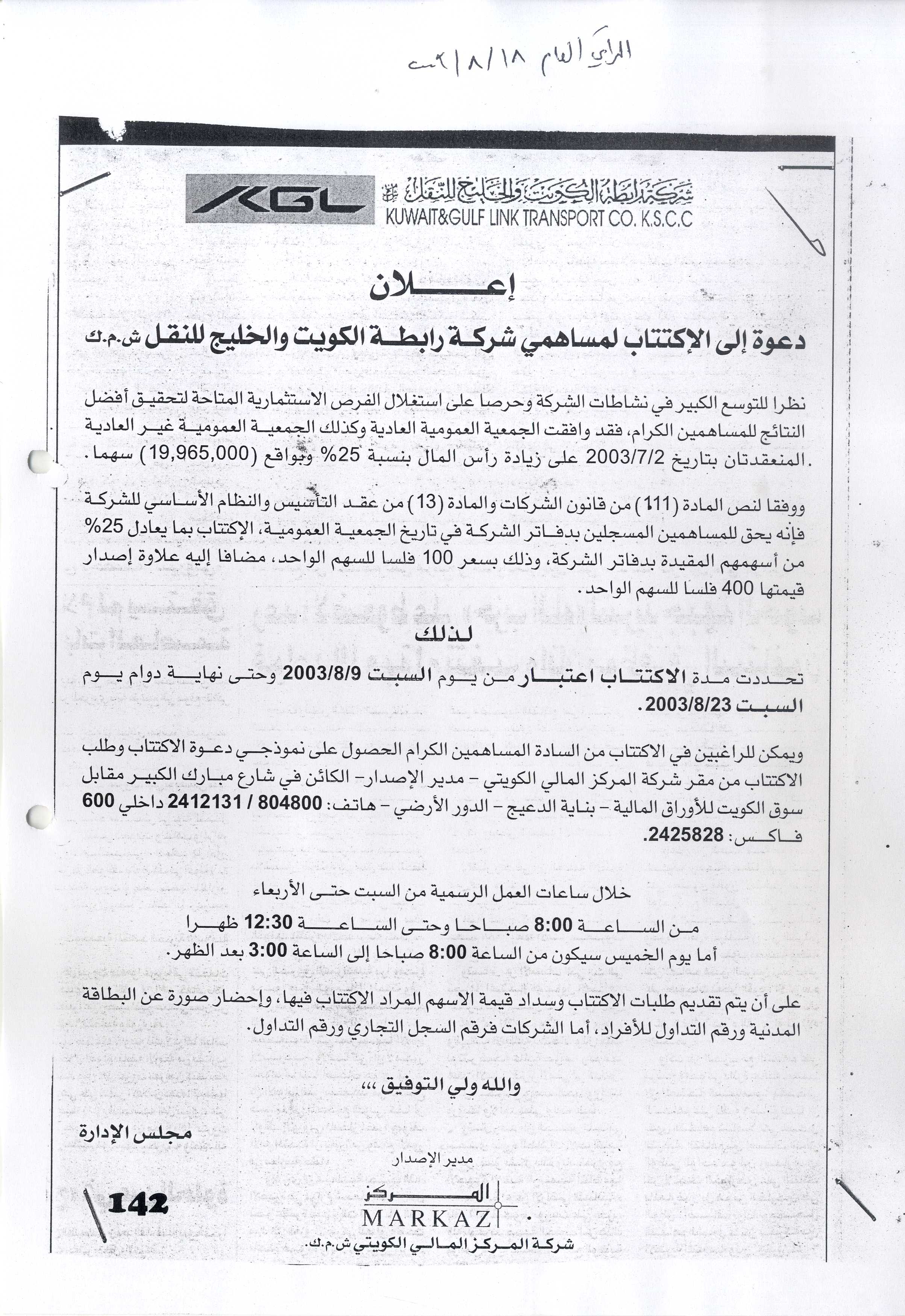 دعوة من "الرابطة" الى الاكتتاب لمساهمي "الرابطة" المقرر عقدها يوم 2003/7/2 |