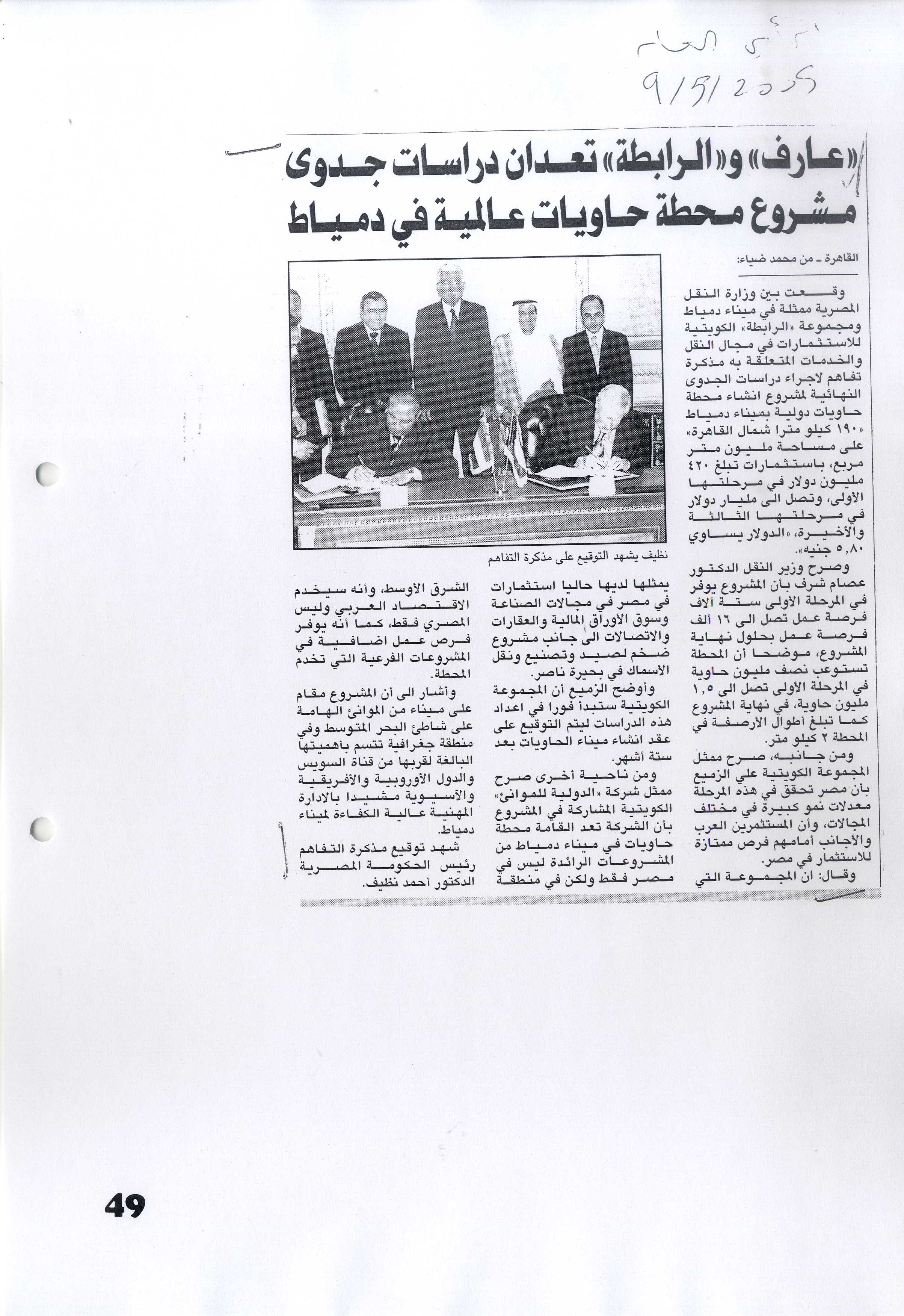 "الرابطة" تؤسس "دمياط الدولية للموانئ" |