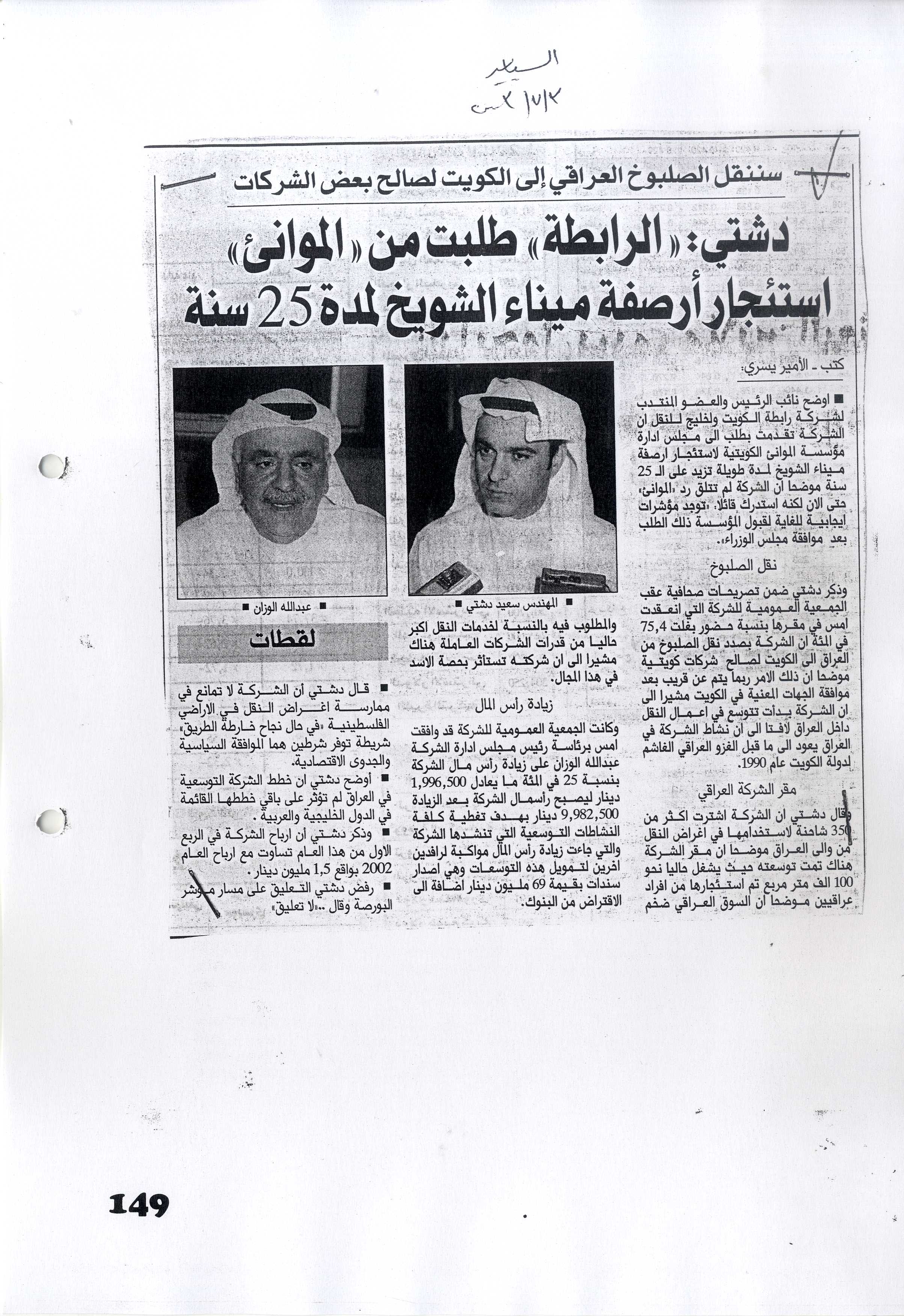 دشتي : "الرابطة" طلبت من "الموانئ" استئجار أرصفة ميناء الشويخ لمدة 25 سنة |