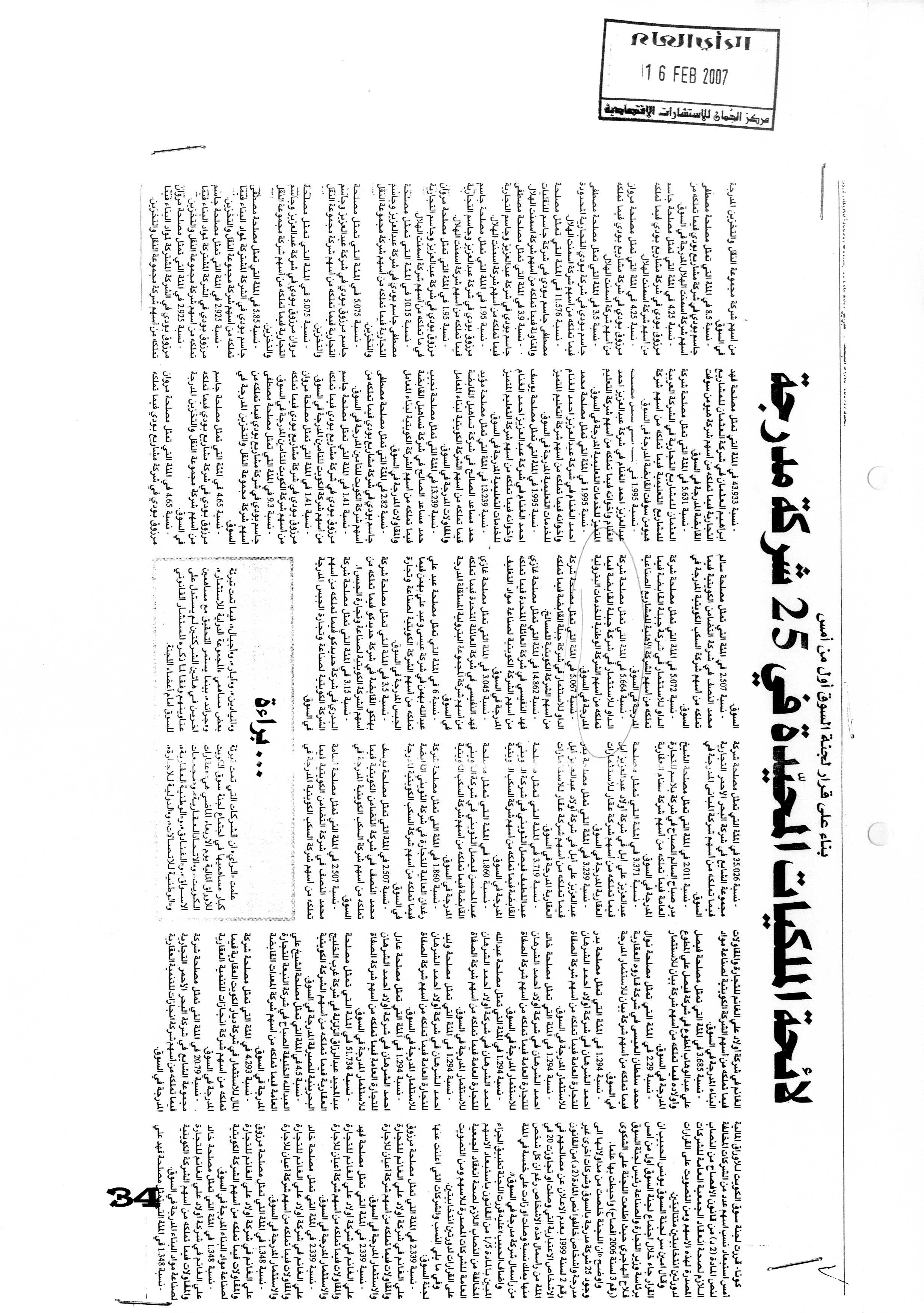 لائحة بأسماء الشركات المحيدة أسهمها ونسب الأخيرة وملاكها