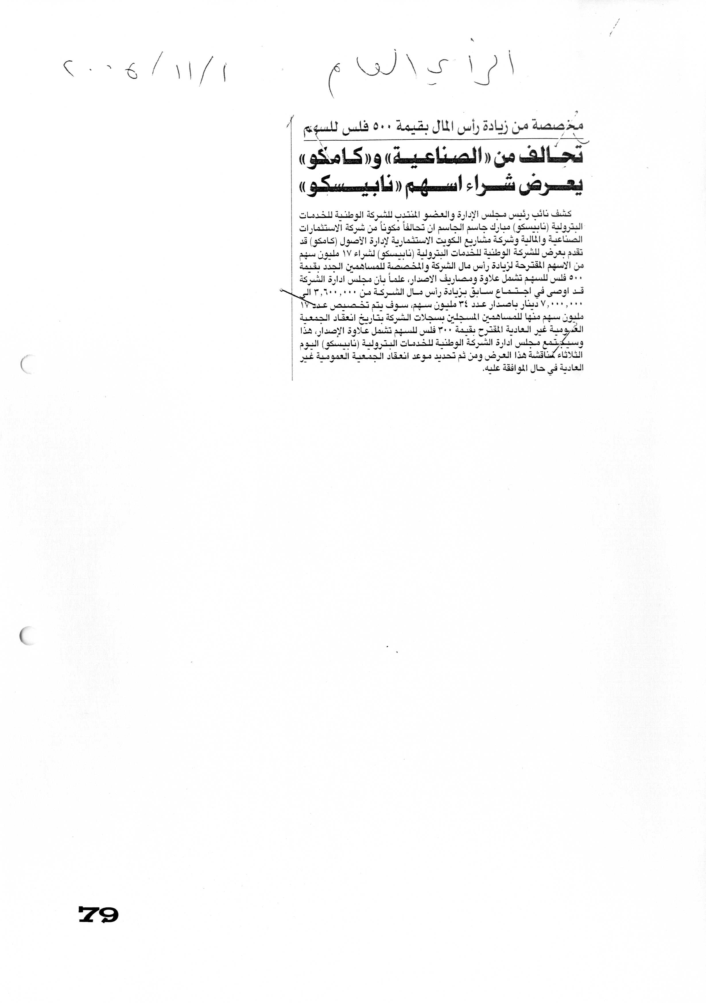 "نابيسكو" تزيد رأس مالها بــ 300 و 500 فلساً للسهم